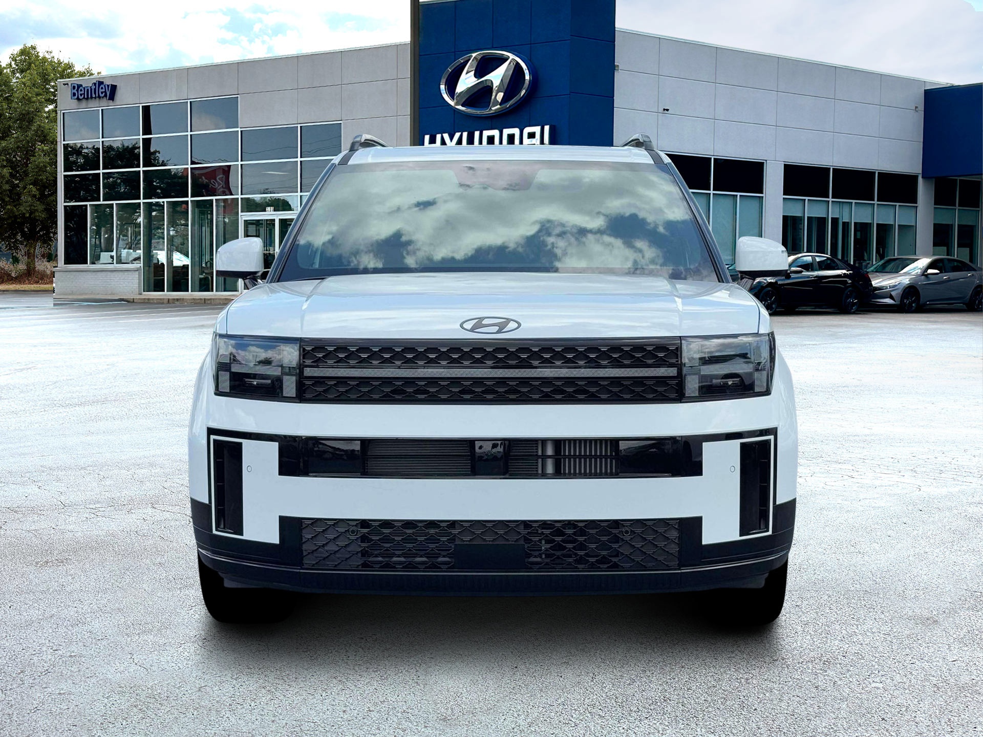 This 2026 Hyundai Santa Fe Hybrid is equipped with Option Group 01, I4, 12 Speakers, 3rd row seats: bench, 4-Wheel Disc Brakes, ABS brakes, Air Conditioning, Alloy wheels, AM/FM radio: SiriusXM, Apple CarPlay & Android Auto, Auto High-beam Headlights, Auto-dimming Rear-View mirror, Automatic temperature control, Brake assist, Bumpers: body-color, Cargo Net, Cargo Tray, Carpeted Floor Mats, Delay-off headlights, Driver door bin, Driver vanity mirror, Dual front impact airbags, Dual front side impact airbags, Electronic Stability Control, Emergency communication system, Exterior Parking Camera Rear, First Aid Kit, Four wheel independent suspension, Front anti-roll bar, Front Bucket Seats, Front Center Armrest, Front dual zone A/C, Front reading lights, Fully automatic headlights, Garage door transmitter: HomeLink, Heads-Up Display, Heated and Ventilated Front Bucket Seats, Heated door mirrors, Heated front seats, Heated rear seats, Heated steering wheel, Illuminated entry, Knee airbag, Leather steering wheel, Low tire pressure warning, Memory seat, Navigation System, Occupant sensing airbag, Outside temperature display, Overhead airbag, Overhead console, Panic alarm, Passenger door bin, Passenger vanity mirror, Power door mirrors, Power driver seat, Power Liftgate, Power moonroof, Power passenger seat, Power steering, Power windows, Quilted Premium Nappa Leather Seat Trim, Radio: AM/FM/HD Bose Premium Audio System, Rain sensing wipers, Rear anti-roll bar, Rear side impact airbag, Rear window defroster, Rear window wiper, Remote keyless entry, Roadside Assistance Kit, Roof Rack Crossbars, Security system, Speed control, Speed-sensing steering, Split folding rear seat, Spoiler, Steering wheel mounted audio controls, Tachometer, Telescoping steering wheel, Tilt steering wheel, Traction control, Trip computer, Turn signal indicator mirrors, Variably intermittent wipers, Ventilated front seats, and Wheels: 20 x 8.5J Unique Dark Finish Alloy.