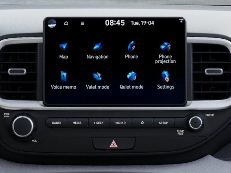This 2026 Hyundai Venue is equipped with Option Group 01, 4-Wheel Disc Brakes, 6 Speakers, 6.5J x 17 Alloy Wheels, ABS brakes, Air Conditioning, Alloy wheels, AM/FM radio, Apple CarPlay & Android Auto, Auto High-beam Headlights, Automatic temperature control, Brake assist, Bumpers: body-color, Carpeted Floor Mats, Cloth Seat Trim, Cross Rails, Delay-off headlights, Driver door bin, Driver vanity mirror, Dual front impact airbags, Dual front side impact airbags, Electronic Stability Control, Front anti-roll bar, Front Bucket Seats, Front Center Armrest, Front reading lights, Front wheel independent suspension, Fully automatic headlights, Heated door mirrors, Heated Front Bucket Seats, Heated front seats, Illuminated entry, Leather Shift Knob, Leather steering wheel, Low tire pressure warning, Occupant sensing airbag, Outside temperature display, Overhead airbag, Overhead console, Panic alarm, Passenger door bin, Passenger vanity mirror, Power door mirrors, Power moonroof, Power steering, Power windows, Radio: AM/FM/HD Display Audio, Rear Seat Cup Holder, Rear window defroster, Rear window wiper, Remote keyless entry, Security system, Speed control, Speed-sensing steering, Split folding rear seat, Spoiler, Steering wheel mounted audio controls, Tachometer, Telescoping steering wheel, Tilt steering wheel, Traction control, Trip computer, and Variably intermittent wipers.