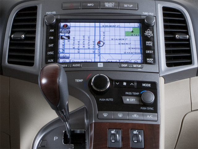 This 2010 Toyota Venza is equipped with 19 x 7.5J 10-Spoke Aluminum Alloy Wheels, 4-Wheel Disc Brakes, 4.356 Axle Ratio, 6 Speakers, ABS brakes, Air Conditioning, Alloy wheels, AM/FM radio: XM, Anti-whiplash front head restraints, Auto-dimming Rear-View mirror, Automatic temperature control, Brake assist, Bumpers: body-color, CD player, Cloth Seat Trim, Compass, Delay-off headlights, Driver door bin, Driver vanity mirror, Dual front impact airbags, Dual front side impact airbags, Electronic Stability Control, Four wheel independent suspension, Front anti-roll bar, Front Bucket Seats, Front Center Armrest, Front dual zone A/C, Front fog lights, Front reading lights, Fully automatic headlights, Garage door transmitter: Homelink, Illuminated entry, Knee airbag, Low tire pressure warning, Occupant sensing airbag, Outside temperature display, Overhead airbag, Overhead console, Panic alarm, Passenger door bin, Passenger vanity mirror, Power door mirrors, Power driver seat, Power steering, Power windows, Radio: AM/FM/SAT Single Disc w/Bluetooth®, Rear anti-roll bar, Rear reading lights, Rear seat center armrest, Rear window defroster, Rear window wiper, Remote keyless entry, Speed control, Speed-sensing steering, Split folding rear seat, Spoiler, Steering wheel mounted audio controls, Tachometer, Telescoping steering wheel, Tilt steering wheel, Traction control, Trip computer, and Variably intermittent wipers.