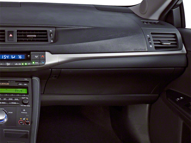 This 2012 Lexus CT is equipped with 1.8L 4-Cylinder DOHC 16V VVT-i, Continuously Variable (ECVT), 17 x 7.0 Aluminum Wheels, 4-Wheel Disc Brakes, 6 Speakers, ABS brakes, Air Conditioning, Alloy wheels, AM/FM radio: SiriusXM, AM/FM/CD Player w/MP3/WMA Capability, Anti-whiplash front head restraints, Automatic temperature control, Brake assist, Bumpers: body-color, CD player, Delay-off headlights, Driver door bin, Driver vanity mirror, Dual front impact airbags, Dual front side impact airbags, Electronic Stability Control, Emergency communication system: Safety Connect, Four wheel independent suspension, Front anti-roll bar, Front Bucket Seats, Front Center Armrest, Front dual zone A/C, Front fog lights, Front reading lights, Heated door mirrors, Heated Front Bucket Seats, Heated front seats, Illuminated entry, Knee airbag, Low tire pressure warning, NuLuxe Seat Material, Occupant sensing airbag, Outside temperature display, Overhead airbag, Overhead console, Panic alarm, Passenger door bin, Passenger vanity mirror, Power door mirrors, Power driver seat, Power moonroof, Power steering, Power windows, Radio data system, Rear anti-roll bar, Rear side impact airbag, Rear window defroster, Rear window wiper, Remote keyless entry, Security system, Speed control, Speed-sensing steering, Split folding rear seat, Spoiler, Steering wheel mounted audio controls, Tachometer, Telescoping steering wheel, Tilt steering wheel, Traction control, Trip computer, Turn signal indicator mirrors, and Variably intermittent wipers.