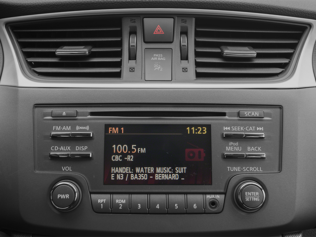 This 2013 Nissan Sentra is equipped with SR Driver Package (AM/FM/CD Audio System, Bluetooth® Hands-Free Phone System, Leather Wrapped Shift Knob, Leather Wrapped Steering Wheel, Nissan Intelligent Key, Rear Disc Brakes, Smart Auto Headlights, and Tire Pressure Monitoring System), CVT with Xtronic, Charcoal Cloth, 6 Speakers, ABS brakes, Air Conditioning, Alloy wheels, AM/FM radio, Brake assist, Bumpers: body-color, Carpeted Floor Mats w/Trunk Mat, CD player, Driver door bin, Driver vanity mirror, Dual front impact airbags, Dual front side impact airbags, Electronic Stability Control, Front anti-roll bar, Front Bucket Seats, Front Center Armrest, Front fog lights, Front reading lights, Front wheel independent suspension, Illuminated entry, Illuminated Kick Plates, Low tire pressure warning, Occupant sensing airbag, Outside temperature display, Overhead airbag, Overhead console, Panic alarm, Passenger door bin, Passenger vanity mirror, Power door mirrors, Power steering, Power windows, Premium Sport Cloth Seat Trim, Radio data system, Radio: AM/FM/CD Audio System w/MP3/WMA Capability, Rear anti-roll bar, Rear seat center armrest, Rear window defroster, Remote keyless entry, Security system, Speed control, Speed-sensing steering, Split folding rear seat, Spoiler, Steering wheel mounted audio controls, Tachometer, Telescoping steering wheel, Tilt steering wheel, Traction control, Trip computer, Variably intermittent wipers, and Wheels: 17 Forked 5-Spoke Aluminum-Alloy.