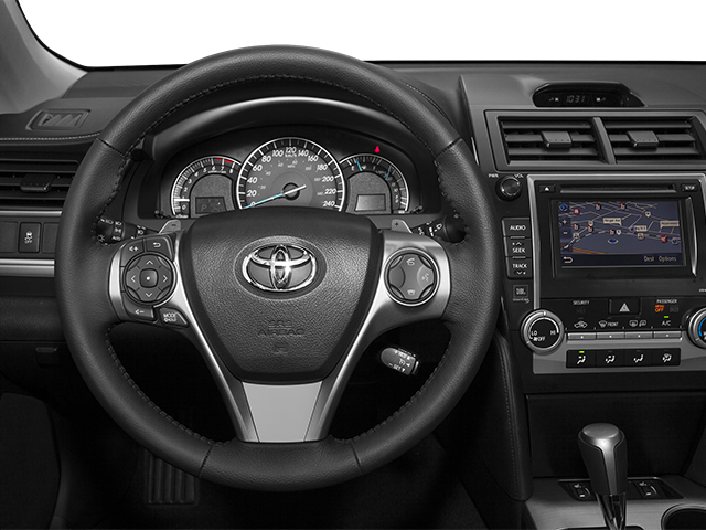 This 2013 Toyota Camry is equipped with Ivory Cloth, ABS brakes, Electronic Stability Control, Illuminated entry, Low tire pressure warning, Remote keyless entry, Traction control, 4-Wheel Disc Brakes, 6 Speakers, 6.5J x 16 Steel Wheels w/Covers, Air Conditioning, AM/FM radio, Brake assist, Bumpers: body-color, CD player, Delay-off headlights, Driver door bin, Driver vanity mirror, Dual front impact airbags, Dual front side impact airbags, Fabric Seat Trim, Four wheel independent suspension, Front anti-roll bar, Front Bucket Seats, Front Center Armrest, Front reading lights, Fully automatic headlights, Knee airbag, Occupant sensing airbag, Outside temperature display, Overhead airbag, Overhead console, Panic alarm, Passenger door bin, Passenger vanity mirror, Power door mirrors, Power steering, Power windows, Radio: AM/FM/CD Player w/6.1 Touch Screen, Rear anti-roll bar, Rear seat center armrest, Rear side impact airbag, Rear window defroster, Speed control, Speed-sensing steering, Split folding rear seat, Steering wheel mounted audio controls, Tachometer, Telescoping steering wheel, Tilt steering wheel, Trip computer, and Variably intermittent wipers.