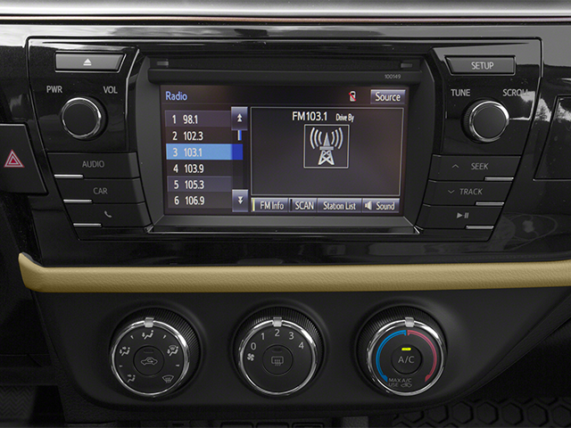 This 2014 Toyota Corolla is equipped with ABS brakes, Electronic Stability Control, Illuminated entry, Low tire pressure warning, Traction control, Air Conditioning, AM/FM radio, Brake assist, Bumpers: body-color, CD player, Delay-off headlights, Driver door bin, Driver vanity mirror, Dual front impact airbags, Dual front side impact airbags, Front anti-roll bar, Front Bucket Seats, Front Center Armrest w/Storage, Front reading lights, Front wheel independent suspension, Knee airbag, Occupant sensing airbag, Outside temperature display, Overhead airbag, Passenger door bin, Passenger vanity mirror, Power door mirrors, Power steering, Power windows, Rear anti-roll bar, Rear window defroster, Speed-sensing steering, Split folding rear seat, Tachometer, Telescoping steering wheel, Tilt steering wheel, and Trip computer.