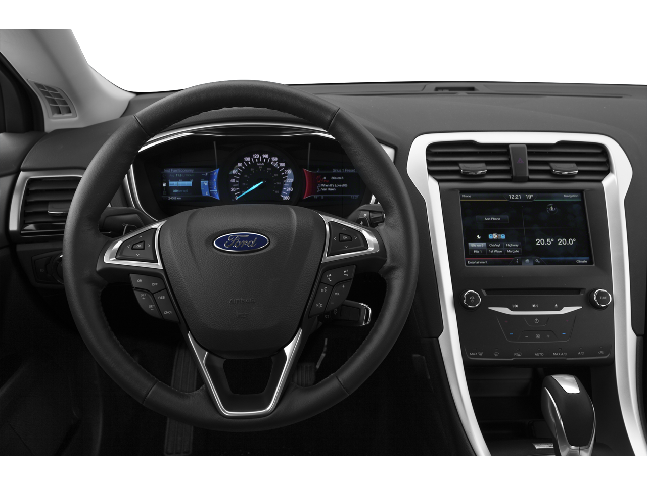 This 2015 Ford Fusion is equipped with 6-Speed Automatic, 17 Painted Aluminum Wheels, 4-Wheel Disc Brakes, 6 Speakers, ABS brakes, Air Conditioning, Alloy wheels, AM/FM radio: SiriusXM, Brake assist, Bumpers: body-color, CD player, Cloth Front Bucket Seats, Compass, Delay-off headlights, Driver door bin, Driver vanity mirror, Dual front impact airbags, Dual front side impact airbags, Electronic Stability Control, Exterior Parking Camera Rear, Four wheel independent suspension, Front anti-roll bar, Front Bucket Seats, Front Center Armrest, Front reading lights, Fully automatic headlights, Heated door mirrors, Illuminated entry, Knee airbag, Low tire pressure warning, Occupant sensing airbag, Outside temperature display, Overhead airbag, Overhead console, Panic alarm, Passenger door bin, Passenger vanity mirror, Power door mirrors, Power driver seat, Power passenger seat, Power steering, Power windows, Radio data system, Radio: AM/FM Stereo/MP3/Single-CD, Rear anti-roll bar, Rear reading lights, Rear seat center armrest, Rear window defroster, Remote keyless entry, Security system, SIRIUS Satellite Radio, Speed control, Speed-sensing steering, Speed-Sensitive Wipers, Split folding rear seat, Steering wheel mounted audio controls, SYNC Communications & Entertainment System, Tachometer, Telescoping steering wheel, Tilt steering wheel, Traction control, Trip computer, Turn signal indicator mirrors, and Variably intermittent wipers.