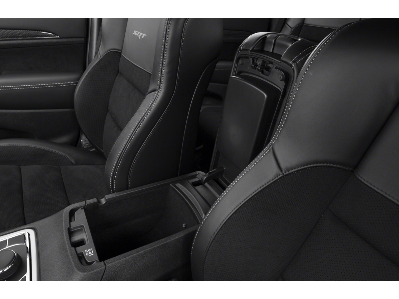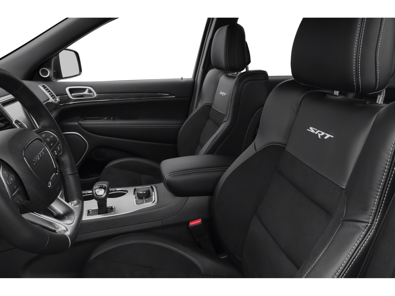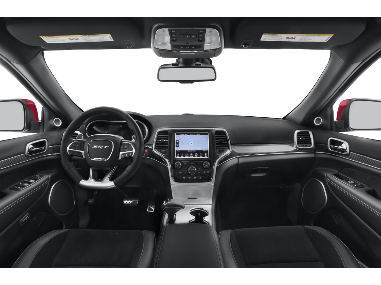 This 2015 Jeep Grand Cherokee is equipped with Quick Order Package 28L (DISC), SRT High Performance Audio (19 Speakers High Performance Audio and 825 Watt Amplifier), Trailer Tow Group IV (7 & 4 Pin Wiring Harness, Class IV Receiver Hitch, and Heavy-Duty Engine Cooling), 4WD, Navigation System, 10 Speakers, 3.70 Rear Axle Ratio, 4-Wheel Disc Brakes, ABS brakes, Adaptive suspension, Air Conditioning, Alloy wheels, AM/FM radio: SiriusXM, Anti-whiplash front head restraints, Audio memory, Auto High-beam Headlights, Auto-dimming door mirrors, Auto-dimming Rear-View mirror, Automatic temperature control, Blu-Ray Compatible Dual Screen Video, Brake assist, Bumpers: body-color, Compass, Delay-off headlights, Driver door bin, Driver vanity mirror, Dual front impact airbags, Dual front side impact airbags, Dual-Pane Panoramic Sunroof (DISC), Electronic Stability Control, Emergency communication system: Uconnect guardian, Engine Block Heater, Exterior Parking Camera Rear, Four wheel independent suspension, Front anti-roll bar, Front Bucket Seats, Front Center Armrest w/Storage, Front dual zone A/C, Front fog lights, Front reading lights, Fully automatic headlights, Garage door transmitter, Headlight cleaning, Heated door mirrors, Heated front seats, Heated rear seats, Heated steering wheel, High intensity discharge headlights: Bi-Xenon, High Performance Suspension, Illuminated entry, Knee airbag, Leather Seats w/Perforated Suede, Leather Shift Knob, Low tire pressure warning, Memory seat, Occupant sensing airbag, Outside temperature display, Overhead airbag, Overhead console, Panic alarm, Passenger door bin, Passenger vanity mirror, Power door mirrors, Power driver seat, Power Liftgate, Power passenger seat, Power steering, Power windows, Radio data system, Radio: Uconnect 8.4 NAV, Rain sensing wipers, Rear anti-roll bar, Rear DVD Entertainment Center, Rear reading lights, Rear seat center armrest, Rear window defroster, Rear window wiper, Rear-Seat Video System, Remote keyless entry, Security system, Speed control, Speed-Sensitive Wipers, Split folding rear seat, Spoiler, Steering wheel mounted audio controls, Tachometer, Telescoping steering wheel, Tilt steering wheel, Traction control, Trip computer, Turn signal indicator mirrors, Variably intermittent wipers, Ventilated front seats, Wheels: 20 x 10.0 Black Chrome Split 5 Spoke, and Wheels: 20 x 10.0 Polished 5 Spoke.