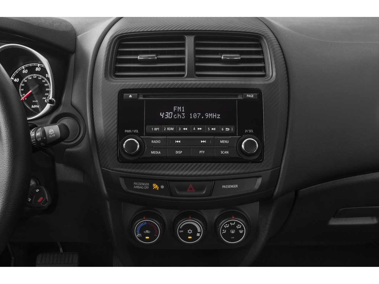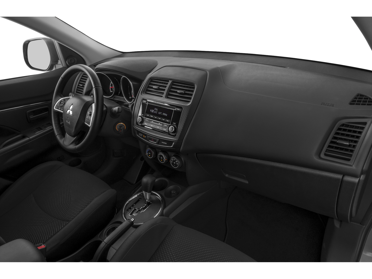 This 2015 Mitsubishi Outlander Sport is equipped with 18 Alloy Wheels, 4 Speakers, 4-Wheel Disc Brakes, 4.235 Axle Ratio, ABS brakes, Air Conditioning, Alloy wheels, AM/FM radio, Anti-whiplash front head restraints, Brake assist, Bumpers: body-color, CD player, Driver door bin, Driver vanity mirror, Dual front impact airbags, Dual front side impact airbags, Electronic Stability Control, Fabric Seat Trim, Four wheel independent suspension, Front anti-roll bar, Front Bucket Seats, Front Center Armrest w/Storage, Front reading lights, Heated door mirrors, Illuminated entry, Knee airbag, Leather Shift Knob, Low tire pressure warning, Occupant sensing airbag, Outside temperature display, Overhead airbag, Panic alarm, Passenger door bin, Passenger vanity mirror, Power door mirrors, Power steering, Power windows, Radio data system, Radio: AM/FM/CD/MP3 Audio System w/4 Speakers, Rear anti-roll bar, Rear seat center armrest, Rear window defroster, Rear window wiper, Remote keyless entry, Security system, Speed control, Speed-sensing steering, Split folding rear seat, Spoiler, Steering wheel mounted audio controls, Tachometer, Telescoping steering wheel, Tilt steering wheel, Traction control, Trip computer, and Variably intermittent wipers.