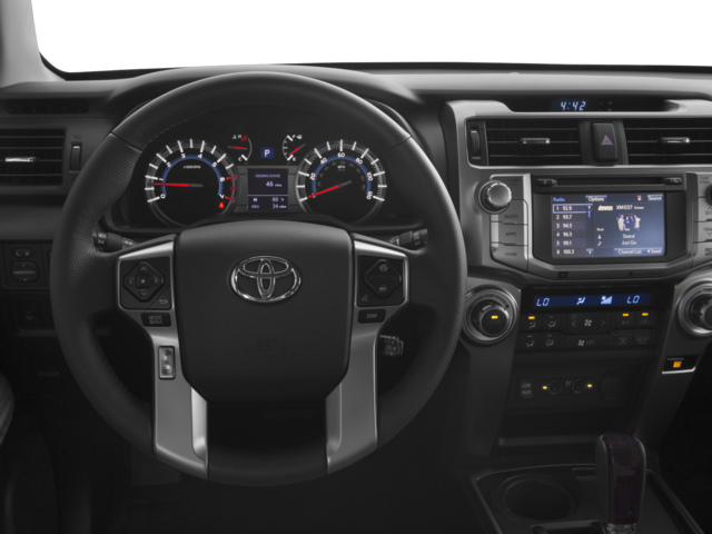 This 2016 Toyota 4Runner is equipped with 4WD, Leather, 15 Speakers, 20 x 7.5 Unique Dual 6-Spoke Alloy Wheels, 3.727 Axle Ratio, 4-Wheel Disc Brakes, ABS brakes, Air Conditioning, Alloy wheels, AM/FM radio: SiriusXM, Anti-whiplash front head restraints, Auto-Dimming Rear-View Mirror, Auto-dimming Rear-View mirror, Automatic temperature control, Body Color Heated Mirrors, Brake assist, Bumpers: body-color, CD player, Compass, Delay-off headlights, Driver door bin, Driver vanity mirror, Dual front impact airbags, Dual front side impact airbags, Electronic Stability Control, Emergency communication system: Safety Connect, Exterior Parking Camera Rear, Front anti-roll bar, Front Bucket Seats, Front Center Armrest, Front dual zone A/C, Front fog lights, Front reading lights, Front wheel independent suspension, Fully automatic headlights, Garage Door Opener, Garage door transmitter: HomeLink, Heated door mirrors, Heated front seats, Heated/Ventilated Front Bucket Seats, Illuminated entry, Knee airbag, Leather Seat Trim, Leather Shift Knob, Low tire pressure warning, Memory seat, Navigation System, Occupant sensing airbag, Outside temperature display, Overhead airbag, Overhead console, Panic alarm, Passenger door bin, Passenger vanity mirror, Power door mirrors, Power driver seat, Power moonroof, Power passenger seat, Power steering, Power Tilt & Slide Moonroof w/Sunshade, Power windows, Radio data system, Radio: Entune Premium JBL Audio w/Navigation, Rear anti-roll bar, Rear seat center armrest, Rear window defroster, Rear window wiper, Remote keyless entry, Right & Left Individual Air Conditioner, Roof rack: rails only, Security system, Speed control, Speed-sensing steering, Split folding rear seat, Spoiler, Steering wheel mounted audio controls, Tachometer, Telescoping steering wheel, Tilt steering wheel, Traction control, Trip computer, Turn signal indicator mirrors, Variably intermittent wipers, Ventilated front seats, and Voltmeter.