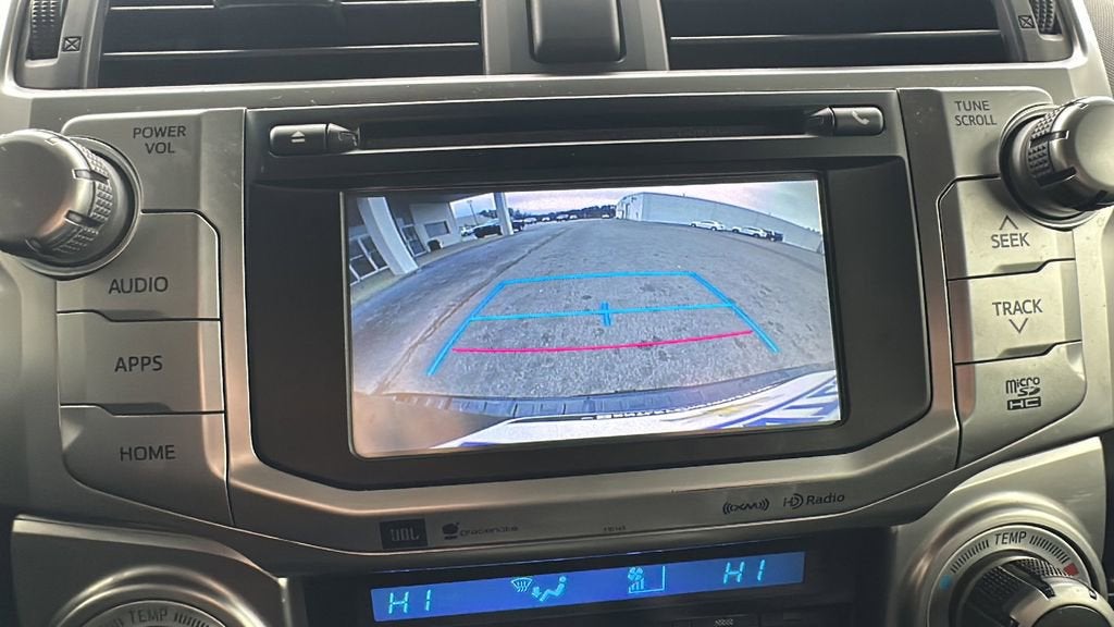 This 2016 Toyota 4Runner is equipped with Black Cloth, 17 x 7.0 6-Spoke Alloy Wheels, 3.727 Axle Ratio, 4-Wheel Disc Brakes, 8 Speakers, ABS brakes, Air Conditioning, Alloy wheels, AM/FM radio: SiriusXM, Anti-whiplash front head restraints, Brake assist, Bumpers: body-color, CD player, Driver door bin, Driver vanity mirror, Dual front impact airbags, Dual front side impact airbags, Electronic Stability Control, Exterior Parking Camera Rear, Front anti-roll bar, Front Bucket Seats, Front Center Armrest, Front fog lights, Front reading lights, Front wheel independent suspension, Heated door mirrors, Illuminated entry, Knee airbag, Leather Shift Knob, Leather steering wheel, Low Fabric Seat Trim, Low tire pressure warning, Occupant sensing airbag, Outside temperature display, Overhead airbag, Overhead console, Panic alarm, Passenger door bin, Passenger vanity mirror, Power door mirrors, Power driver seat, Power steering, Power windows, Radio: Entune Audio Plus w/Connected Navigation, Rear anti-roll bar, Rear seat center armrest, Rear window defroster, Rear window wiper, Remote keyless entry, Roof rack: rails only, Speed control, Speed-sensing steering, Split folding rear seat, Spoiler, Steering wheel mounted audio controls, Tachometer, Telescoping steering wheel, Tilt steering wheel, Traction control, Trip computer, Variably intermittent wipers, and Voltmeter.