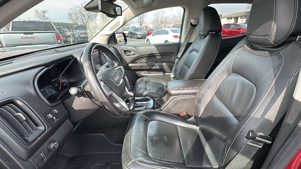 This 2017 GMC Canyon is equipped with Driver Alert Package (Forward Collision Alert and Lane Departure Warning System), Preferred Equipment Group 2LT, Trailering Package, 3.42 Rear Axle Ratio, 4-Wheel Disc Brakes, 6 Speakers, ABS brakes, Air Conditioning, Alloy wheels, AM/FM radio: SiriusXM, Auto-dimming Rear-View mirror, Automatic temperature control, Bose Premium 7-Speaker Audio System Feature, Bumpers: body-color, Compass, Delay-off headlights, Driver door bin, Driver vanity mirror, Dual front impact airbags, Dual front side impact airbags, Electronic Stability Control, Emergency communication system: OnStar Guidance, Exterior Parking Camera Rear, Front anti-roll bar, Front Bucket Seats, Front Center Armrest, Front fog lights, Front reading lights, Front wheel independent suspension, Fully automatic headlights, Heated door mirrors, Heated front seats, Illuminated entry, Integrated Trailer Brake Controller, Leather-Appointed Seat Trim, Low tire pressure warning, Occupant sensing airbag, Outside temperature display, Overhead airbag, Overhead console, Panic alarm, Passenger door bin, Passenger vanity mirror, Power door mirrors, Power driver seat, Power passenger seat, Power steering, Power windows, Premium audio system: IntelliLink, Radio data system, Radio: AM/FM Stereo 8 Diagonal Color Touch Screen, Radio: AM/FM Stereo w/8 Color Touch Navigation, Rear reading lights, Rear seat center armrest, Rear step bumper, Rear window defroster, Remote keyless entry, Security system, SiriusXM Satellite Radio, Speed control, Speed-sensing steering, Steering wheel mounted audio controls, Tachometer, Telescoping steering wheel, Tilt steering wheel, Traction control, Trip computer, Variably intermittent wipers, and Wheels: 18 x 8.5 Polished Cast Aluminum. Recent Arrival!