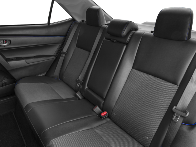 This 2017 Toyota Corolla is equipped with 4-Wheel Disc Brakes, 6 Speakers, ABS brakes, Air Conditioning, Alloy wheels, AM/FM radio, Auto High-beam Headlights, Automatic temperature control, Brake assist, Bumpers: body-color, CD player, Delay-off headlights, Driver door bin, Driver vanity mirror, Dual front impact airbags, Dual front side impact airbags, Electronic Stability Control, Exterior Parking Camera Rear, Fabric Seat Trim w/SofTex, Front anti-roll bar, Front Bucket Seats, Front Center Armrest w/Storage, Front reading lights, Front Sport Bucket Seats, Front wheel independent suspension, Fully automatic headlights, Heated door mirrors, Illuminated entry, Knee airbag, Leather steering wheel, Low tire pressure warning, Occupant sensing airbag, Outside temperature display, Overhead airbag, Panic alarm, Passenger door bin, Passenger vanity mirror, Power door mirrors, Power steering, Power windows, Radio data system, Radio: Entune Audio Plus w/Connected Navigation, Radio: Entune Audio w/6.1 Screen, Rear anti-roll bar, Rear seat center armrest, Rear window defroster, Remote keyless entry, Smart Key System w/Push Button Start, Speed control, Speed-sensing steering, Split folding rear seat, Spoiler, Steering wheel mounted audio controls, Tachometer, Telescoping steering wheel, Tilt & Slide Moonroof, Tilt steering wheel, Traction control, Trip computer, Turn signal indicator mirrors, Variably intermittent wipers, and Wheels: 17 x 7.0 Machined Alloy.