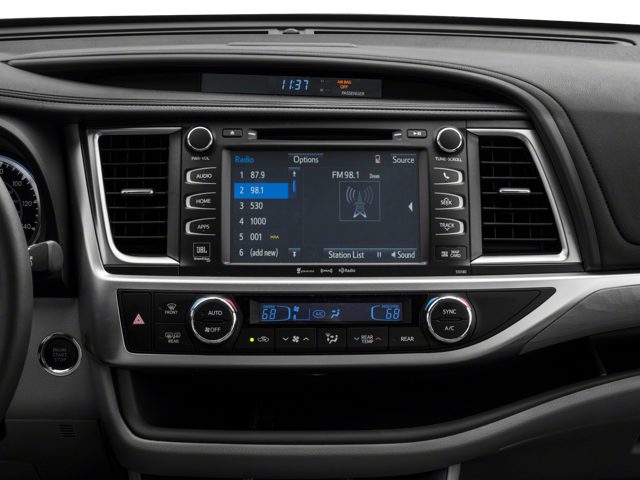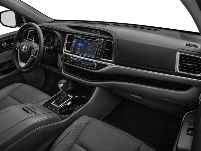 This 2018 Toyota Highlander is equipped with Navigation System, 12 Speakers, 3.003 Axle Ratio, 3rd row seats: split-bench, 4-Wheel Disc Brakes, ABS brakes, Air Conditioning, Alloy wheels, AM/FM radio: SiriusXM, Auto High-beam Headlights, Auto-dimming Rear-View mirror, Automatic temperature control, Brake assist, Bumpers: body-color, CD player, Delay-off headlights, Driver door bin, Driver vanity mirror, Dual front impact airbags, Dual front side impact airbags, Electronic Stability Control, Emergency communication system: Safety Connect, Exterior Parking Camera Rear, Four wheel independent suspension, Front anti-roll bar, Front Bucket Seats, Front Center Armrest, Front dual zone A/C, Front fog lights, Front reading lights, Fully automatic headlights, Garage door transmitter, Heated door mirrors, Heated front seats, Heated rear seats, Heated steering wheel, Heated/Ventilated Front Bucket Seats, Illuminated entry, Knee airbag, Leather Shift Knob, Low tire pressure warning, Memory seat, Occupant sensing airbag, Outside temperature display, Overhead airbag, Overhead console, Panic alarm, Panoramic Moonroof, Panoramic View Monitor, Passenger door bin, Passenger vanity mirror, Perforated Leather Seat Trim, Power door mirrors, Power driver seat, Power Liftgate, Power moonroof, Power passenger seat, Power steering, Power windows, Radio: Entune Premium JBL Audio w/Nav & App Suite, Rain sensing wipers, Rear air conditioning, Rear anti-roll bar, Rear reading lights, Rear window defroster, Rear window wiper, Reclining 3rd row seat, Remote keyless entry, Roof rack: rails only, Safety Connect, Security system, Speed control, Speed-sensing steering, Split folding rear seat, Spoiler, Steering wheel mounted audio controls, Tachometer, Telescoping steering wheel, Tilt steering wheel, Traction control, Trip computer, Turn signal indicator mirrors, Variably intermittent wipers, Ventilated front seats, and Wheels: 19 5-Spoke Dark-Chromtec Alloy.