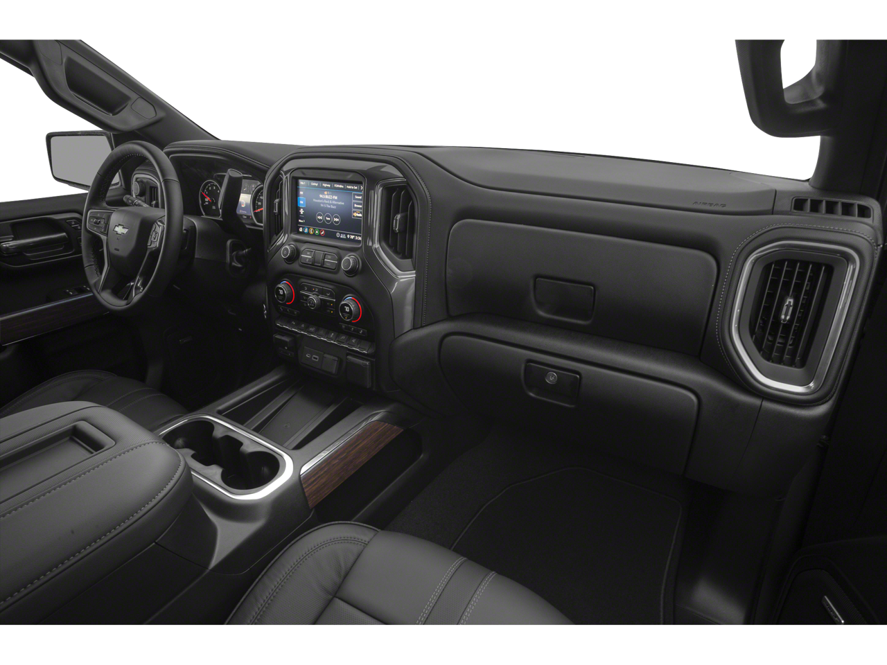 This 2019 Chevrolet Silverado 1500 is equipped with High Country Deluxe (All-Weather Floor Liner (LPO) and Power Sunroof), Preferred Equipment Group 3LZ (10-Way Power Driver Seat w/Lumbar, 10-Way Power Passenger Seat Adjuster w/Lumbar, 12-Volt Rear Auxiliary Power Outlet, 120-Volt Bed Mounted Power Outlet, 120-Volt Instrument Panel Power Outlet, 170 Amp Alternator, 2nd Row Heated Outboard Seats, 8 Driver Information Center, Advanced Trailering System, Auto-Dimming Inside Rear-View Mirror, Auxiliary External Transmission Oil Cooler, Bluetooth® For Phone, Chevrolet Connected Access, Chevrolet w/4G LTE, Chevytec Spray-On Black Bedliner, Chrome Assist Steps, Chrome Grille, Chrome Recovery Hooks, Color-Keyed Carpeting Floor Covering, Compass, Deep-Tinted Glass, Driver Memory, Dual Exhaust w/Polished Outlets, Electric Rear-Window Defogger, Electrical Lock Control Steering Column, Electronic Cruise Control, Floor Mounted Console, Front Carpeted Floor Mats, Front LED Fog Lamps, HD Radio, HD Rear Vision Camera, Heated Driver & Front Passenger Seats, Heated Steering Wheel, Heavy-Duty Rear Locking Differential, Hitch Guidance, Hitch Guidance w/Hitch View, Integrated Trailer Brake Controller, Keyless Open & Start, Lane Change Alert w/Side Blind Zone Alert, Leather Wrapped Steering Wheel, LED Cargo Area Lighting, Manual Tilt/Telescoping Steering Column, OnStar & Chevrolet Connected Services Capable, Outside Heated Power-Adjustable Mirrors, Painted Mirror Caps, Power Door Locks, Power Front Passenger Windows w/Express Up/Down, Power Front Windows w/Driver Express Up/Down, Power Rear Windows w/Express Down, Power Sliding Rear Window w/Rear Defogger, Rear Carpeted Floor Mats, Rear Cross Traffic Alert, Rear Dual USB Charging-Only Ports, Rear Wheelhouse Liners, Remote Vehicle Starter System, SiriusXM Radio, Steering Wheel Audio Controls, Theft Deterrent System (Unauthorized Entry), Trailer Tire Pressure Monitor System, Ultrasonic Front & Rear Park Assist, Universal Home Remote, Ventilated Driver & Front Passenger Seats, and Wireless Charging), Safety Package II (Following Distance Indicator, Forward Collision Alert, Front Pedestrian Braking, IntelliBeam Automatic High Beam On/Off, Lane Keep Assist w/Lane Departure Warning, Low Speed Forward Automatic Braking, and Safety Alert Seat), Technology Package (15 Diagonal Head-Up Display, HD Surround Vision, and Rear Camera Mirror), Trailering Package, Up-Level Rear Seat w/Storage Package, 10-Speed Automatic, 4WD, Jet Black Leather, Navigation System, 3.23 Rear Axle Ratio, 4-Wheel Disc Brakes, 7 Speakers, ABS brakes, Air Conditioning, Alloy wheels, AM/FM radio: SiriusXM, Apple CarPlay/Android Auto, Auto-dimming door mirrors, Auto-dimming Rear-View mirror, Automatic temperature control, Brake assist, Bumpers: body-color, Delay-off headlights, Driver door bin, Driver vanity mirror, Dual front impact airbags, Dual front side impact airbags, Electronic Stability Control, Front anti-roll bar, Front Bucket Seats, Front Center Armrest w/Storage, Front dual zone A/C, Front fog lights, Front License Plate Kit, Front reading lights, Front wheel independent suspension, Fully automatic headlights, Garage door transmitter, Heated door mirrors, Heated front seats, Heated rear seats, Heated steering wheel, Heavy Duty Suspension, Illuminated entry, Low tire pressure warning, Memory seat, Occupant sensing airbag, Outside temperature display, Overhead airbag, Overhead console, Panic alarm, Passenger door bin, Passenger vanity mirror, Perforated Leather Appointed Seat Trim, Power door mirrors, Power driver seat, Power passenger seat, Power steering, Power windows, Power-Retractable Assist Steps, Premium audio system: Chevrolet Infotainment System 3, Radio data system, Radio: Chevrolet Infotainment 3 Premium System, Rear reading lights, Rear seat center armrest, Rear step bumper, Rear window defroster, Remote keyless entry, Security system, Speed control, Speed-sensing ste