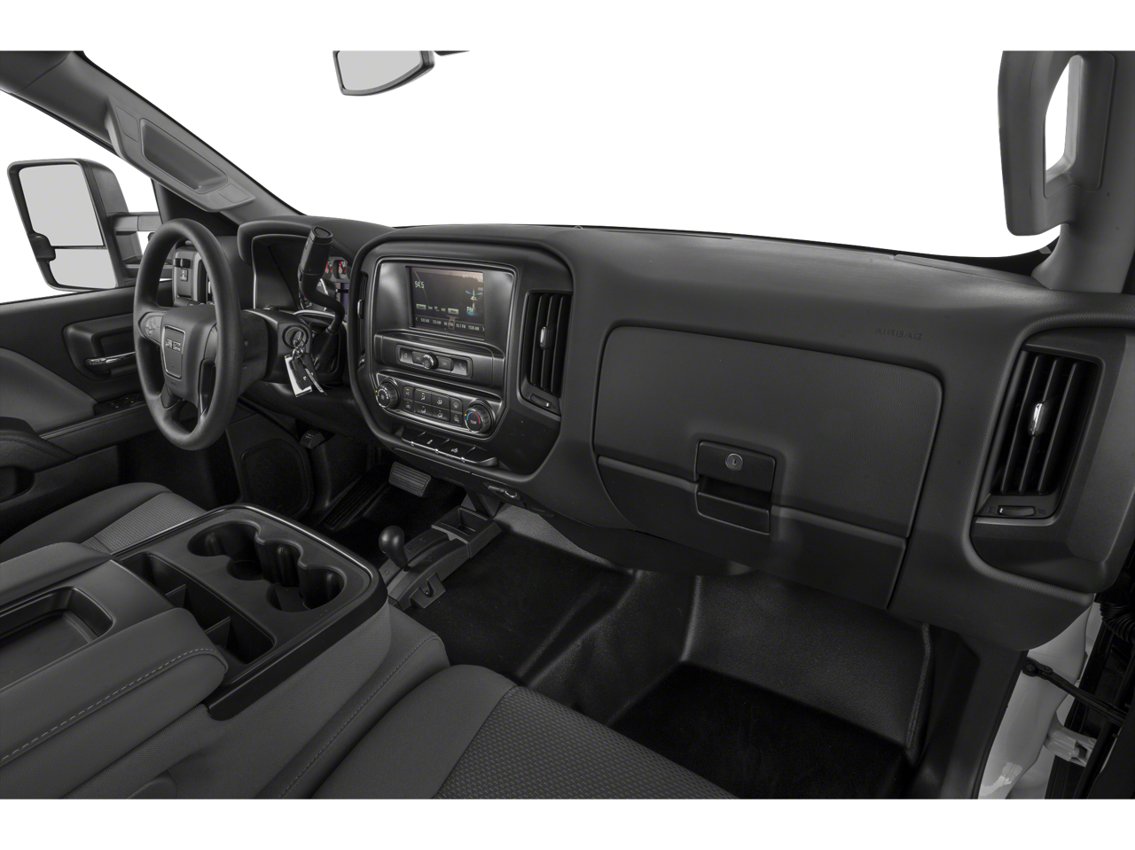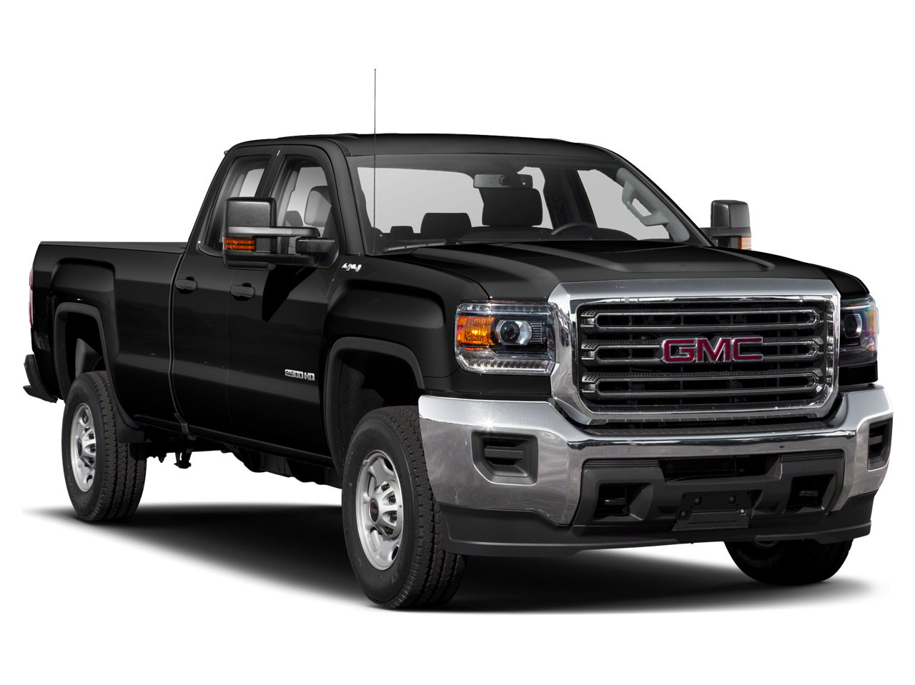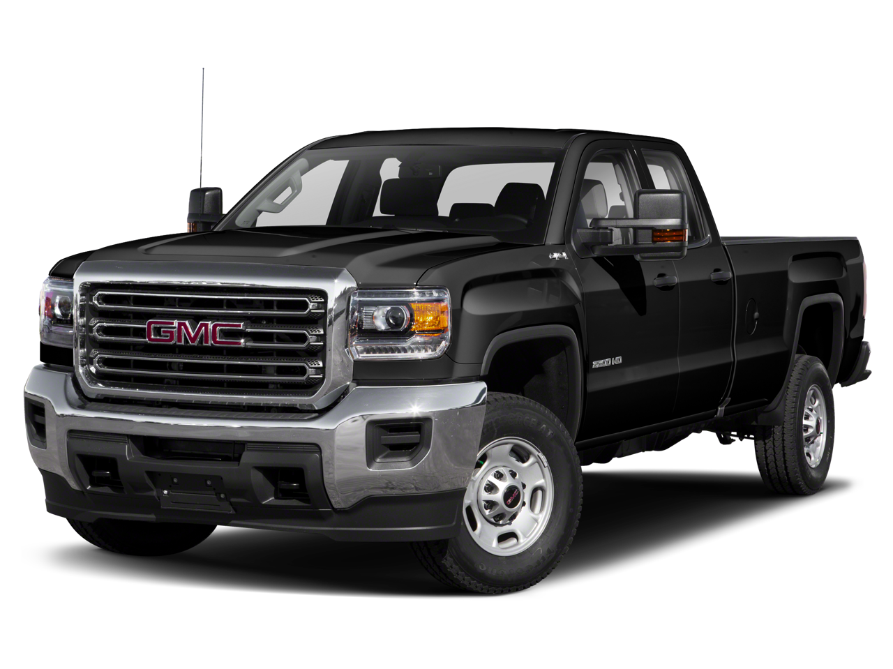 This 2019 GMC Sierra 2500HD is equipped with Heavy-Duty Handling/Trailering Suspension Package, OnStar & GMC Connected Services Capable (GMC 4G LTE and GMC Connected Access), 6-Speed Automatic HD Electronic with Overdrive, 4WD, Dark Ash Seats With Jet Black Interior Accents Vinyl, 110-Volt AC Power Outlet, 4-Wheel Disc Brakes, 4.10 Rear Axle Ratio, 6 Speakers, ABS brakes, Air Conditioning, Bluetooth® For Phone, Brake assist, Bumpers: chrome, Cloth Seat Trim, Color-Keyed Carpeting Floor Covering, Deep-Tinted Glass, Delay-off headlights, Driver door bin, Dual front impact airbags, Dual front side impact airbags, Electronic Stability Control, Exterior Parking Camera Rear, Front 40/20/40 Reclining Split-Bench Seat, Front anti-roll bar, Front Center Armrest w/Storage, Front reading lights, Front wheel independent suspension, Fully automatic headlights, High-Intensity Discharge Headlights, LED Cargo Box Lighting, Low tire pressure warning, Occupant sensing airbag, Overhead airbag, Overhead console, Passenger door bin, Passenger vanity mirror, Power steering, Power windows, Premium audio system: GMC Infotainment System, Rear reading lights, Rear step bumper, Remote Keyless Entry, Remote Locking Tailgate, Rubberized-Vinyl Front Floor Mats, Rubberized-Vinyl Rear Floor Mats, Speed control, Tachometer, Tilt steering wheel, Traction control, Trip computer, Variably intermittent wipers, and Voltmeter.