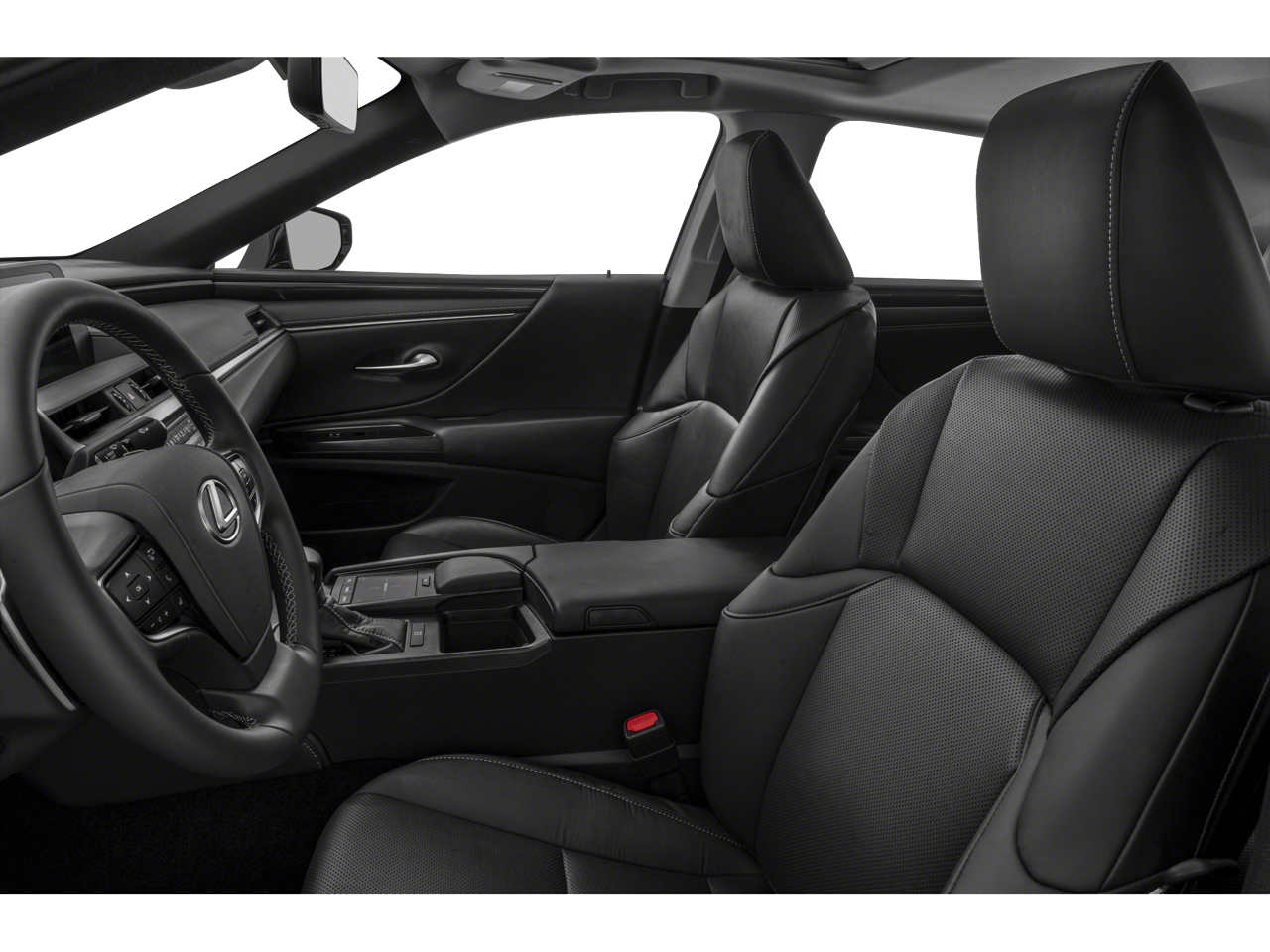 This 2019 Lexus ES is equipped with Chateau W/Linear Dark Mocha Wood, 10 Speakers, 4-Wheel Disc Brakes, ABS brakes, Air Conditioning, Alloy wheels, AM/FM radio: SiriusXM, Auto High-beam Headlights, Auto-dimming door mirrors, Automatic temperature control, Brake assist, Bumpers: body-color, CD player, Compass, Delay-off headlights, Driver door bin, Driver Seat Memory, Driver vanity mirror, Dual front impact airbags, Dual front side impact airbags, Electronic Stability Control, Emergency communication system: Lexus Enform w/Safety Connect, Exterior Parking Camera Rear, Four wheel independent suspension, Front anti-roll bar, Front Bucket Seats, Front Center Armrest, Front dual zone A/C, Front reading lights, Fully automatic headlights, Garage door transmitter: HomeLink, Heated & Ventilated Seats, Illuminated entry, Knee airbag, Leather Shift Knob, Leather steering wheel, Low tire pressure warning, Occupant sensing airbag, Outside temperature display, Overhead airbag, Overhead console, Panic alarm, Passenger door bin, Passenger vanity mirror, Power door mirrors, Power driver seat, Power moonroof, Power passenger seat, Power steering, Power Tilt/Telescoping Steering Wheel w/Memory, Power windows, Radio data system, Radio: Lexus Premium Sound System w/10 Speakers, Rain Sensing Wipers, Rear anti-roll bar, Rear reading lights, Rear seat center armrest, Rear side impact airbag, Rear window defroster, Remote keyless entry, Security system, Speed control, Speed-sensing steering, Steering wheel mounted audio controls, Tachometer, Telescoping steering wheel, Tilt steering wheel, Traction control, Trip computer, Turn signal indicator mirrors, and Variably intermittent wipers.