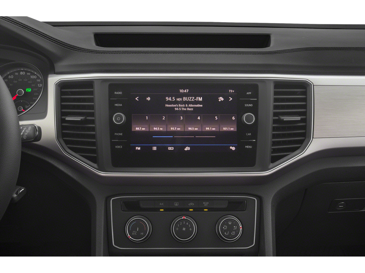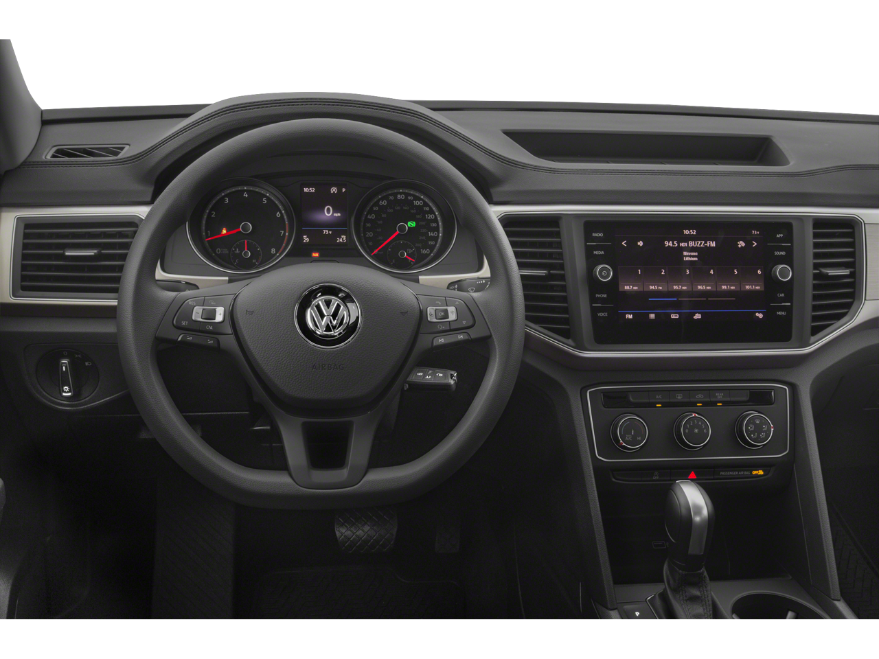 This 2019 Volkswagen Atlas is equipped with 20 Silver Triple 5-Spoke Wheels (Wheels: 20 Silver Triple 5-Spoke Alloy), Panoramic Sunroof Package (HomeLink Garage Door Opener and Panoramic Sunroof), Towing Package, 18 5-Spoke Wheels, 3.60 Axle Ratio, 3rd row seats: split-bench, 4-Wheel Disc Brakes, 8 Speakers, ABS brakes, Active Blind Spot Monitor, Air Conditioning, Alloy wheels, AM/FM radio: SiriusXM, Auto-dimming Rear-View mirror, Automatic temperature control, Brake assist, Bumpers: body-color, Compass, Delay-off headlights, Driver door bin, Driver vanity mirror, Dual front impact airbags, Dual front side impact airbags, Electronic Stability Control, Emergency communication system: VW Car-Net services (capabilities require enrollment or subscription), Exterior Parking Camera Rear, Forward collision: FCW w/Autonomous Emergency Braking mitigation, Four wheel independent suspension, Front anti-roll bar, Front Bucket Seats, Front Center Armrest, Front dual zone A/C, Front fog lights, Front reading lights, Heated Comfort Front Bucket Seats, Heated door mirrors, Heated front seats, Heavy Duty Trunk Liner w/VW CarGo Blocks, Illuminated entry, Low tire pressure warning, Occupant sensing airbag, Outside temperature display, Overhead airbag, Overhead console, Panic alarm, Passenger door bin, Passenger vanity mirror, Power door mirrors, Power driver seat, Power Liftgate, Power steering, Power windows, Privacy Cover, Radio data system, Radio: Composition Media 8.0 Touchscreen, Rain sensing wipers, Rear air conditioning, Rear anti-roll bar, Rear Bumper Applique in Chrome, Rear reading lights, Rear seat center armrest, Rear window defroster, Rear window wiper, Remote CD player, Remote keyless entry, Roof rack: rails only, Rubber Mats Kit - Bench Seats, Security system, Speed control, Speed-sensing steering, Split folding rear seat, Spoiler, Standard Suspension, Steering wheel mounted audio controls, Tachometer, Telescoping steering wheel, Tilt steering wheel, Traction control, Trip computer, Turn signal indicator mirrors, V-Tex Leatherette Seating Surfaces, and Variably intermittent wipers.