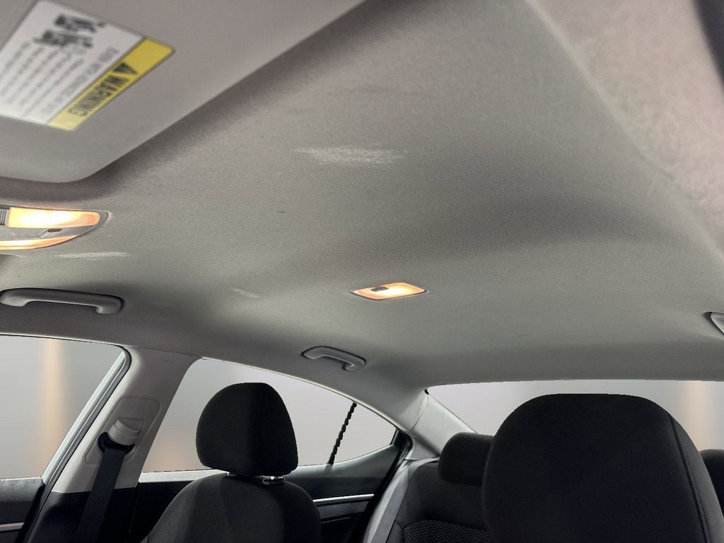 This 2020 Hyundai Elantra is equipped with Cargo Package (C1) (Cargo Net, Reversible Cargo Tray, and Trunk Hooks), Option Group 01, 6 Speakers, ABS brakes, Air Conditioning, AM/FM radio, Automatic temperature control, Brake assist, Bumpers: body-color, Carpeted Floor Mats, Delay-off headlights, Driver door bin, Driver vanity mirror, Dual front impact airbags, Dual front side impact airbags, Electronic Stability Control, Exterior Parking Camera Rear, First Aid Kit, Front anti-roll bar, Front Bucket Seats, Front Center Armrest, Front dual zone A/C, Front reading lights, Front wheel independent suspension, Illuminated entry, Knee airbag, Lane Departure Warning System, Low tire pressure warning, Mudguards, Occupant sensing airbag, Outside temperature display, Overhead airbag, Overhead console, Panic alarm, Passenger door bin, Passenger vanity mirror, Power door mirrors, Power steering, Power windows, Premium Cloth Seat Trim, Radio: AM/FM Audio System, Rear window defroster, Remote keyless entry, Security system, Speed control, Speed-sensing steering, Split folding rear seat, Steering wheel mounted audio controls, Tachometer, Telescoping steering wheel, Tilt steering wheel, Traction control, Trip computer, Variably intermittent wipers, and Wheels: 15 x 6.0J Steel w/Covers.