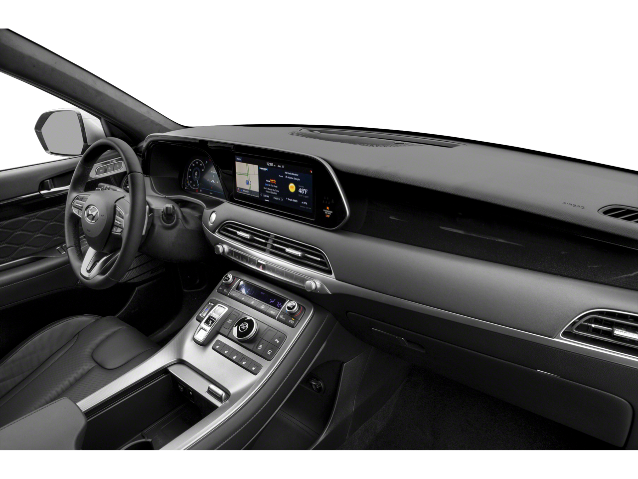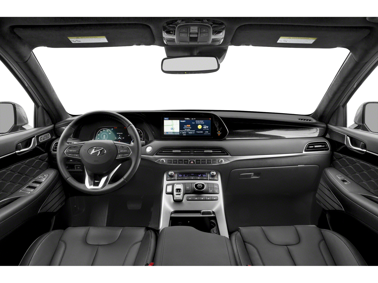This 2020 Hyundai Palisade is equipped with Option Group 01, Navigation System, 12 Speakers, 3.648 Axle Ratio, 3rd row seats: split-bench, 4-Wheel Disc Brakes, ABS brakes, Air Conditioning, All-Season Fitted Liners, Alloy wheels, AM/FM radio: SiriusXM, Apple CarPlay & Android Auto, Auto High-beam Headlights, Auto-dimming Rear-View mirror, Auto-leveling suspension, Automatic temperature control, Brake assist, Bumper Applique, Bumpers: body-color, Cargo Cover/Screen, Cargo Net, Cargo Tray, Carpeted Floor Mats, Compass, Delay-off headlights, Driver door bin, Driver vanity mirror, Dual front impact airbags, Dual front side impact airbags, Electronic Stability Control, Emergency communication system, First Aid Kit, Four wheel independent suspension, Front anti-roll bar, Front Bucket Seats, Front Center Armrest, Front dual zone A/C, Front reading lights, Fully automatic headlights, Garage door transmitter: HomeLink, harman/kardon® Speakers, Heads-Up Display, Heated & Ventilated Front Bucket Seats, Heated door mirrors, Heated front seats, Heated rear seats, Heated steering wheel, Illuminated entry, Knee airbag, Low tire pressure warning, Memory seat, Occupant sensing airbag, Outside temperature display, Overhead airbag, Overhead console, Panic alarm, Passenger door bin, Passenger vanity mirror, Power door mirrors, Power driver seat, Power Liftgate, Power moonroof, Power passenger seat, Power steering, Power windows, Premium Nappa Leather Seat Trim, Radio data system, Radio: AM/FM/MP3 Premium Audio System, Rain sensing wipers, Rear air conditioning, Rear anti-roll bar, Rear window defroster, Rear window wiper, Reclining 3rd row seat, Remote keyless entry, Security system, Speed control, Speed-sensing steering, Split folding rear seat, Spoiler, Steering wheel mounted audio controls, Tachometer, Telescoping steering wheel, Tilt steering wheel, Tow Hitch, Traction control, Trip computer, Turn signal indicator mirrors, Variably intermittent wipers, Ventilated front seats, Ventilated rear seats, and Wheels: 20 x 7.5J 14-Spoke Premium Finish Alloy.