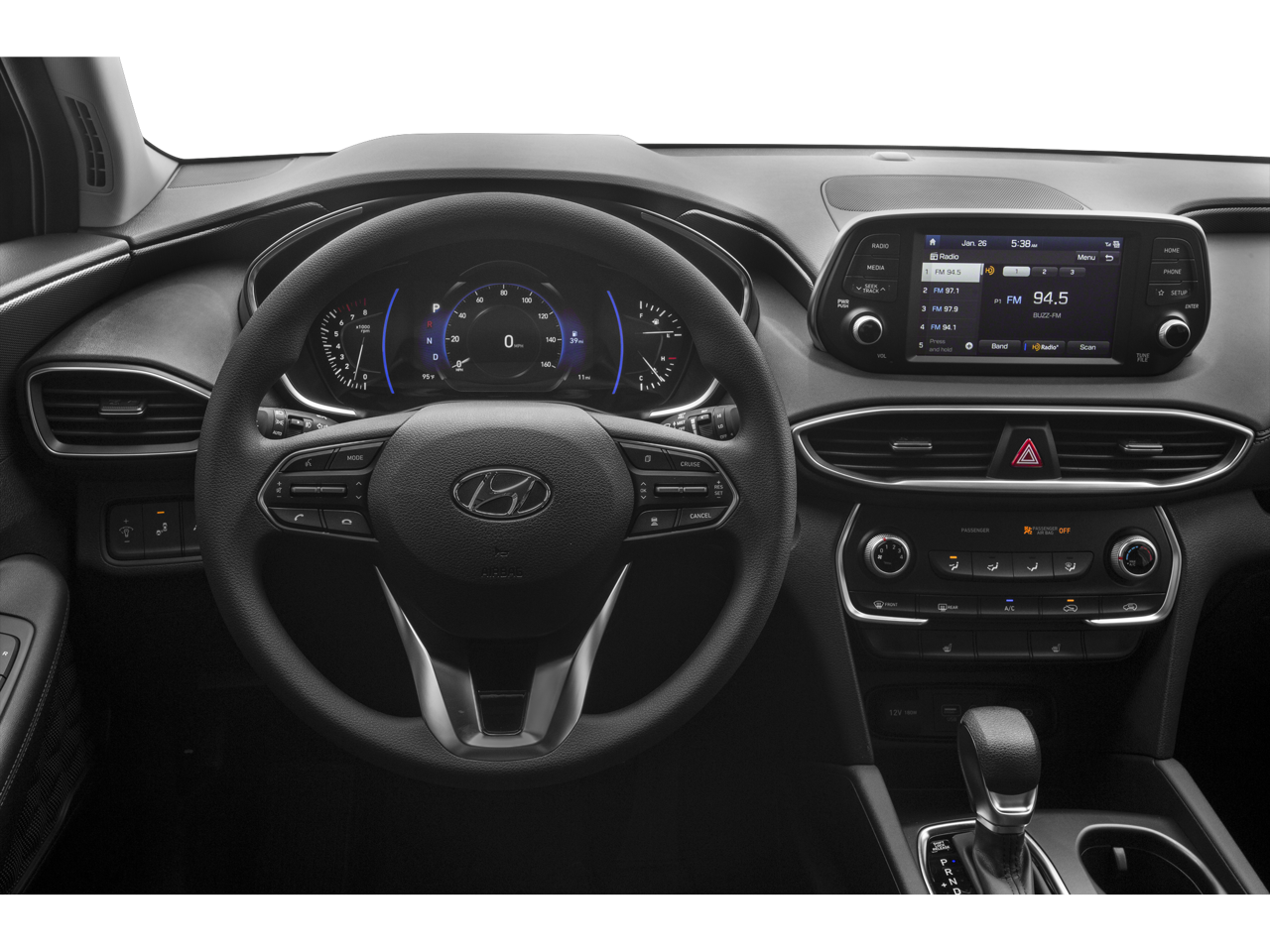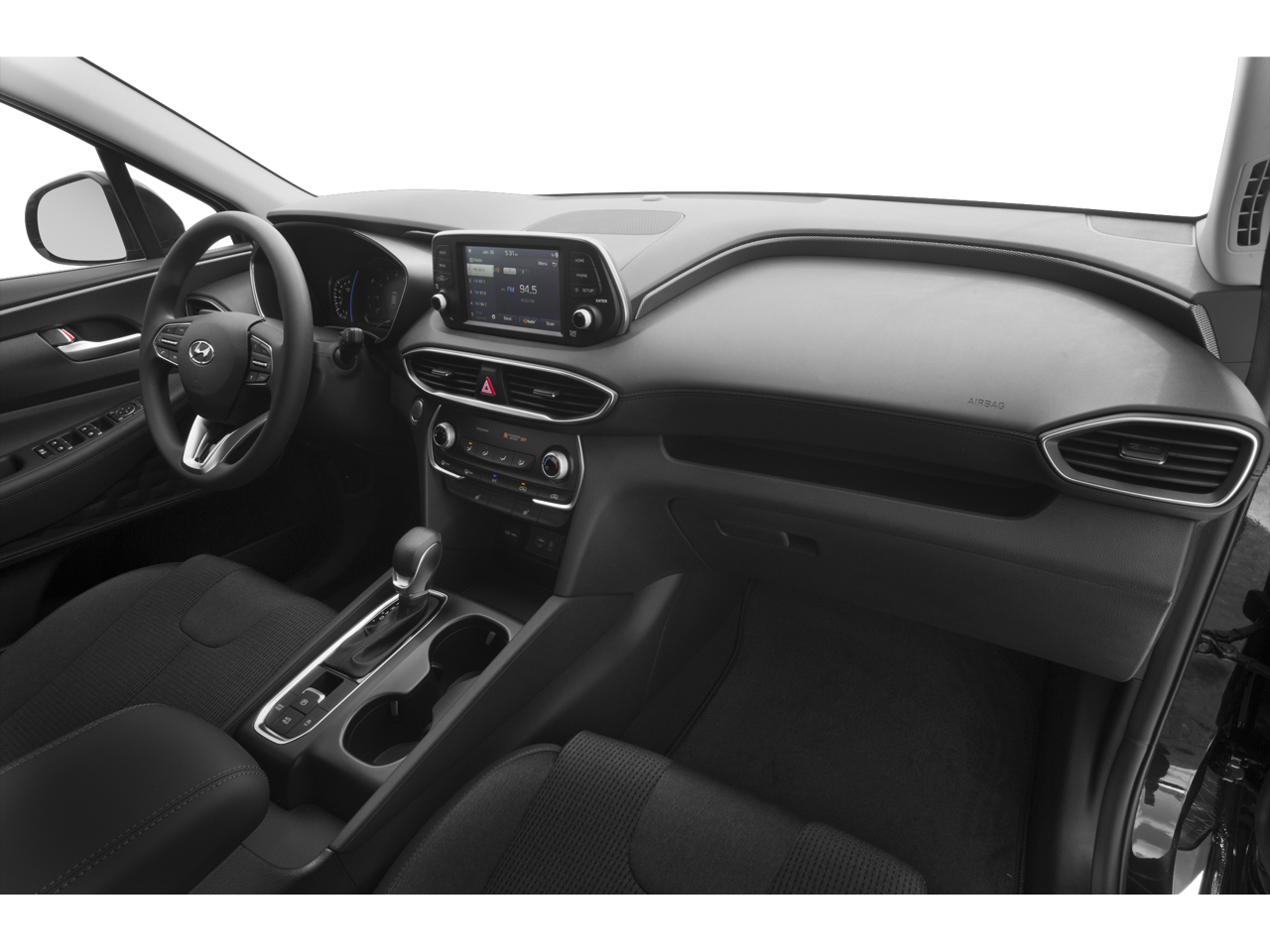 This 2020 Hyundai Santa Fe is equipped with Cargo Package, Convenience + Premium Package (8-Way Power Adjustable Passenger Seat, Leather Seating Surfaces, LED Fog Lights, LED Headlights, LED Interior Lights, LED Taillights, Option Group 03, Panoramic Sunroof, Satin Chrome Exterior Door Handles, and Side Mirrors w/Turn Signal Indicators), Black/Black Leather, 17 x 7.0J Alloy Wheels, 4-Wheel Disc Brakes, 6 Speakers, ABS brakes, Air Conditioning, Alloy wheels, AM/FM radio: SiriusXM, Apple CarPlay & Android Auto, Auto High-beam Headlights, Axle Ratio 3.798, Brake assist, Bumper Applique, Bumpers: body-color, Cargo Cover, Carpeted Floor Mats, Delay-off headlights, Driver door bin, Driver vanity mirror, Dual front impact airbags, Dual front side impact airbags, Electronic Stability Control, Emergency communication system, Exterior Parking Camera Rear, Four wheel independent suspension, Front anti-roll bar, Front Bucket Seats, Front Center Armrest, Front fog lights, Front reading lights, Fully automatic headlights, Heated door mirrors, Heated Front Bucket Seats, Heated front seats, Illuminated entry, Low tire pressure warning, Occupant sensing airbag, Outside temperature display, Overhead airbag, Overhead console, Panic alarm, Passenger door bin, Passenger vanity mirror, Power door mirrors, Power driver seat, Power steering, Power windows, Radio: AM/FM/MP3 Display Audio, Rear anti-roll bar, Rear seat center armrest, Rear window defroster, Rear window wiper, Remote keyless entry, Security system, Speed control, Speed-sensing steering, Split folding rear seat, Spoiler, Stain-Resistant Cloth Seating Surfaces, Steering wheel mounted audio controls, Tachometer, Telescoping steering wheel, Tilt steering wheel, Traction control, Trip computer, Variably intermittent wipers, and Wheel Locks.