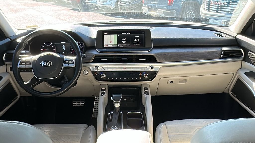 This 2020 Kia Telluride is equipped with SX Prestige Package (110V Inverter, Heads-Up Display, Heated & Ventilated 2nd Row Seats, Heated Steering Wheel, Nappa Leather Seat Trim, Premium Cloth Headliner & Pillar Trim, and Rain Sensing Wipers), Navigation System, 10 Speakers, 3.648 Axle Ratio, 3rd row seats: split-bench, 4-Wheel Disc Brakes, ABS brakes, Air Conditioning, Alloy wheels, AM/FM radio: SiriusXM, Apple CarPlay & Android Auto, Auto High-beam Headlights, Auto-dimming Rear-View mirror, Automatic temperature control, Brake assist, Bumpers: body-color, Carpeted Floor Mats, Compass, Delay-off headlights, Driver door bin, Driver vanity mirror, Dual front impact airbags, Dual front side impact airbags, Electronic Stability Control, Emergency communication system: 911 Connect, Four wheel independent suspension, Front anti-roll bar, Front Bucket Seats, Front Center Armrest, Front dual zone A/C, Front fog lights, Front reading lights, Fully automatic headlights, Garage door transmitter: HomeLink, Heated & Ventilated Front Bucket Seats, Heated door mirrors, Heated front seats, Heated steering wheel, Illuminated entry, Knee airbag, Leather Shift Knob, Leather steering wheel, Leather-Trimmed Upholstery, Low tire pressure warning, Memory seat, Multi Colored Interior Light Kit, Occupant sensing airbag, Outside temperature display, Overhead airbag, Overhead console, Panic alarm, Passenger door bin, Passenger vanity mirror, Power door mirrors, Power driver seat, Power Liftgate, Power moonroof, Power passenger seat, Power steering, Power windows, Radio data system, Radio: AM/FM/MP3/SiriusXM Audio System, Rear air conditioning, Rear anti-roll bar, Rear audio controls, Rear reading lights, Rear window defroster, Rear window wiper, Reclining 3rd row seat, Remote keyless entry, Roof rack: rails only, Security system, Speed control, Speed-sensing steering, Split folding rear seat, Spoiler, Steering wheel mounted audio controls, Tachometer, Telescoping steering wheel, Tilt steering wheel, Traction control, Trip computer, Turn signal indicator mirrors, Variably intermittent wipers, Ventilated front seats, and Wheels: 7.5 x 20 Black Finish Sport Alloy.