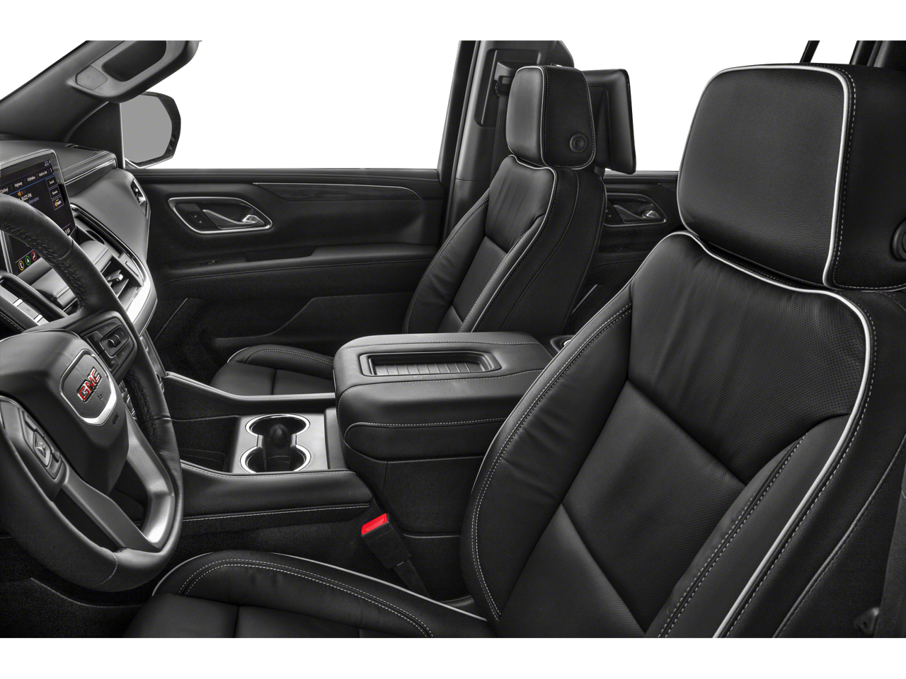 This 2021 GMC Yukon XL is equipped with Preferred Equipment Group 4SA (12-Way Power Seat Adjusters, 2 Presets For Power Driver Seat, Bose 9-Speaker Stereo Audio System Feature, Bright Chrome Bodyside Moldings, Bright Front & Rear Door Sill Plates, Chrome Door Handles w/Body-Color Strip, Hands-Free Power Programmable Rear Liftgate, Heated & Ventilated Driver & Front Passenger Seats, Heated Driver & Front Passenger Seats, Inside Rear-View Auto-Dimming Mirror, Safety Alert Seat, and Universal Home Remote), Rear Media & Nav Package (HD Radio, Radio: AM/FM/SiriusXM w/Navigation, Rear Seat Media System, and SiriusXM w/360L), SLT Luxury Package (2 Presets For Outside Rearview Mirrors, 3rd Row 60/40 Power-Folding Split-Bench Seat, HD Surround Vision, Heated 2nd Row Outboard Position Seats, Heated Automatic Steering Wheel, Outside Heated Power-Adjustable Mirrors, Power Release 2nd Row 60/40 Split-Folding Bench Seat, Power Tilt & Telescopic Steering Column, and Rear Pedestrian Alert), SLT Premium Package (Dual-Pane Panoramic Power Sunroof), 4WD, 3.23 Rear Axle Ratio, 3rd row seats: split-bench, 4-Wheel Disc Brakes, 9 Speakers, ABS brakes, Air Conditioning, Alloy wheels, AM/FM radio: SiriusXM with 360L, Apple CarPlay/Android Auto, Auto High-beam Headlights, Auto-dimming Rear-View mirror, Automatic Emergency Braking, Automatic temperature control, Bodyside moldings, Brake assist, Bumpers: body-color, Compass, Delay-off headlights, Driver door bin, Driver vanity mirror, Dual front impact airbags, Dual front side impact airbags, Electronic Stability Control, Emergency communication system: OnStar and GMC connected services capable, Floor Console, Following Distance Indicator, Forward Collision Alert, Four wheel independent suspension, Front & Rear Park Assist, Front anti-roll bar, Front Bucket Seats, Front Center Armrest, Front dual zone A/C, Front fog lights, Front Pedestrian Braking, Front reading lights, Fully automatic headlights, Garage door transmitter, Heated door mirrors, Heated front seats, Illuminated entry, IntelliBeam Automatic High Beam On/Off, Lane Change Alert w/Side Blind Zone Alert, Lane Keep Assist w/Lane Departure Warning, Leather steering wheel, Low tire pressure warning, Memory seat, Not Equipped w/Automatic Stop/Start, Not Equipped w/Steering Column Lock, Occupant sensing airbag, Outside temperature display, Overhead airbag, Overhead console, Panic alarm, Passenger door bin, Passenger vanity mirror, Perforated Leather Seating Surfaces, Power door mirrors, Power driver seat, Power Liftgate, Power passenger seat, Power Release 2nd Row Bucket Seats, Power steering, Power windows, Premium Smooth Ride Suspension, Radio: AM/FM/SiriusXM, Rain sensing wipers, Rear air conditioning, Rear anti-roll bar, Rear Cross Traffic Alert, Rear reading lights, Rear seat center armr