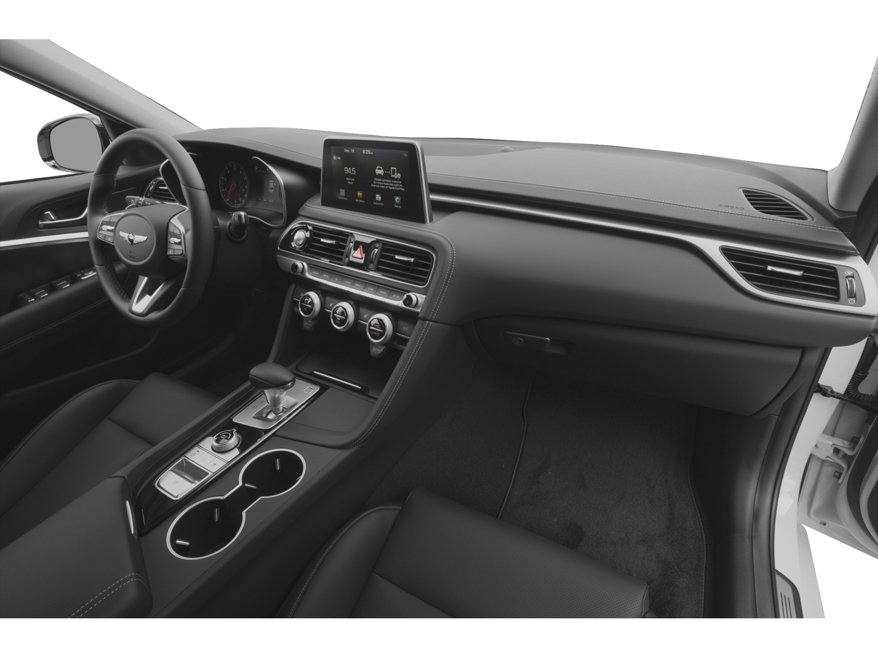This 2021 Genesis G70 is equipped with Option Group 02 w/Prestige Package (12-Way Power Passenger Seat w/4-Way Power Lumbar, 14-Way Power Driver Seat w/ Cushion Extension, Door & Console Aluminum Trim, Forward/Reverse Parking Distance Warning, Front Passenger Seat Walk-In Device, Genesis Logo Approach Lights, Heated Front Seats, Integrated Memory System (IMS), Integrated Navigation System, Power Folding Auto-Dimming Outside Mirrors, Power Tilt & Telescopic Steering Wheel, Radio: AM/FM/SiriusXM/HD Radio Lexicon Audio Sys, and Wide Sunroof), Prestige Package (4-Way Power Lumbar Front Passenger Seat, Heads-Up Display (HUD), Heated Rear Seats, Heated Steering Wheel, Low Beam Assist (LBA), Microfiber Suede Headliner, Nappa Leather Seating Surfaces w/Luxury Quilting, Option Group 03, Power Driver Seat Cushion Extension, Rain-Sensing Wipers, Surround View Monitor (SVM), Ventilated Front Seats, Wheels: 19 x 8.0J Fr & 19 x 8.5J Rr Alloy, and Wireless Charging Pad), 4-Wheel Disc Brakes, 6 Speakers, ABS brakes, Air Conditioning, Alloy wheels, AM/FM radio: SiriusXM, Android Auto & Apple CarPlay, Anti-whiplash front head restraints, Auto High-beam Headlights, Auto-dimming Rear-View mirror, Automatic temperature control, Brake assist, Bumpers: body-color, Delay-off headlights, Driver door bin, Driver vanity mirror, Dual front impact airbags, Dual front side impact airbags, Electronic Stability Control, Emergency communication system: Genesis Connected Services, Exterior Parking Camera Rear, Four wheel independent suspension, Front anti-roll bar, Front Bucket Seats, Front Center Armrest, Front dual zone A/C, Front reading lights, Fully automatic headlights, Garage door transmitter: HomeLink, Heated door mirrors, Illuminated Door Scuff Plates, Illuminated entry, Knee airbag, Leatherette Seating Surfaces, Low tire pressure warning, Multi-Adjustable Front Bucket Seats, Occupant sensing airbag, Outside temperature display, Overhead airbag, Overhead console, Panic alarm, Passenger door bin, Passenger vanity mirror, Power door mirrors, Power driver seat, Power passenger seat, Power steering, Power windows, Premium First Aid Kit, Radio: AM/FM/SiriusXM/HD Audio System, Rear anti-roll bar, Rear Bumper Applique, Rear Mud Guards, Rear reading lights, Rear seat center armrest, Rear window defroster, Remote keyless entry, Reversible Cargo Tray, Security system, Speed control, Speed-Sensitive Wipers, Split folding rear seat, Steering wheel mounted audio controls, Tachometer, Telescoping steering wheel, Tilt steering wheel, Traction control, Trip computer, Turn signal indicator mirrors, Variably intermittent wipers, and Wheels: 18 x 8.0J Alloy w/Bright Finish.