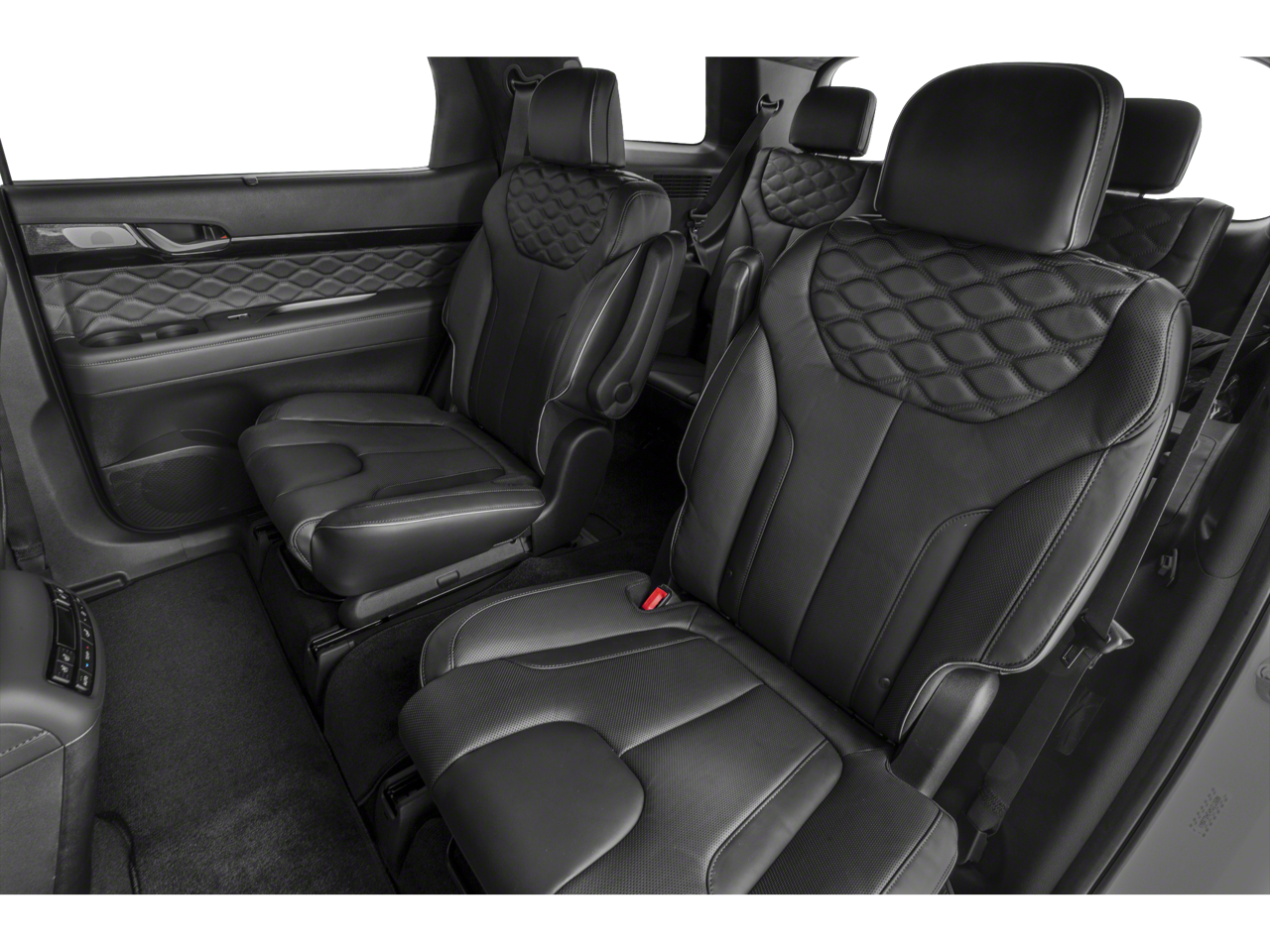 This 2021 Hyundai Palisade is equipped with Cargo Package (Cargo Block, Cargo Net, and Cargo Tray), Option Group 01, Navigation System, 12 Speakers, 3.648 Axle Ratio, 3rd row seats: split-bench, 4-Wheel Disc Brakes, ABS brakes, Air Conditioning, Alloy wheels, AM/FM radio: SiriusXM, Apple CarPlay & Android Auto, Auto High-beam Headlights, Auto-dimming Rear-View mirror, Auto-leveling suspension, Automatic temperature control, Brake assist, Bumper Applique, Bumpers: body-color, Carpeted Floor Mats, Compass, Delay-off headlights, Driver door bin, Driver vanity mirror, Dual front impact airbags, Dual front side impact airbags, Electronic Stability Control, Emergency communication system: Blue Link Connected Car Service (3-year complimentary subscription), First Aid Kit, Four wheel independent suspension, Front anti-roll bar, Front Bucket Seats, Front Center Armrest, Front dual zone A/C, Front reading lights, Fully automatic headlights, Garage door transmitter: HomeLink, harman/kardon® Speakers, Heads-Up Display, Heated & Ventilated Front Bucket Seats, Heated door mirrors, Heated front seats, Heated rear seats, Heated steering wheel, Illuminated entry, Knee airbag, Low tire pressure warning, Memory seat, Mudguards, Occupant sensing airbag, Outside temperature display, Overhead airbag, Overhead console, Panic alarm, Passenger door bin, Passenger vanity mirror, Power door mirrors, Power driver seat, Power Liftgate, Power moonroof, Power passenger seat, Power steering, Power windows, Premium Nappa Leather Seat Trim, Radio data system, Radio: AM/FM/MP3 Premium Audio System, Rain sensing wipers, Rear air conditioning, Rear anti-roll bar, Rear reading lights, Rear window defroster, Rear window wiper, Reclining 3rd row seat, Remote keyless entry, Security system, Speed control, Speed-sensing steering, Split folding rear seat, Spoiler, Steering wheel mounted audio controls, Tachometer, Telescoping steering wheel, Tilt steering wheel, Traction control, Trip computer, Turn signal indicator mirrors, Variably intermittent wipers, Ventilated front seats, Ventilated rear seats, Wheel Locks, and Wheels: 20 x 7.5J Calligraphy Exclusive Alloy.