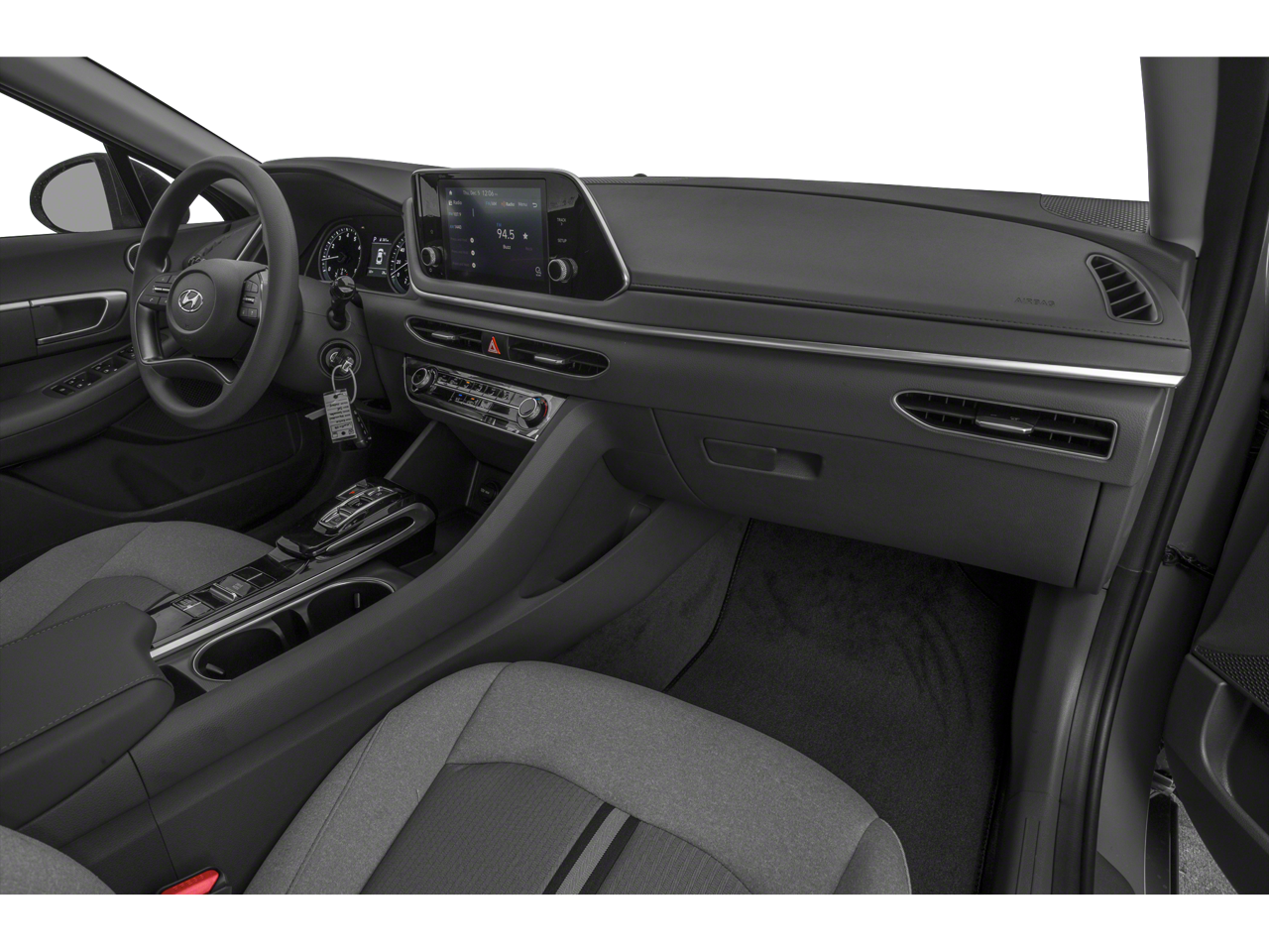 This 2021 Hyundai Sonata is equipped with Option Group 01, Dark Gray Cloth, 16 x 6.5J Aluminum Alloy Wheels, 4-Wheel Disc Brakes, 6 Speakers, ABS brakes, Air Conditioning, Alloy wheels, AM/FM radio, Apple CarPlay & Android Auto, Auto High-beam Headlights, Brake assist, Bumpers: body-color, Delay-off headlights, Driver door bin, Driver vanity mirror, Dual front impact airbags, Dual front side impact airbags, Electronic Stability Control, Exterior Parking Camera Rear, Four wheel independent suspension, Front anti-roll bar, Front Bucket Seats, Front Center Armrest, Front reading lights, Fully automatic headlights, Illuminated entry, Knee airbag, Low tire pressure warning, Occupant sensing airbag, Outside temperature display, Overhead airbag, Overhead console, Panic alarm, Passenger door bin, Passenger vanity mirror, Power door mirrors, Power steering, Power windows, Premium Cloth Seating Surfaces, Radio data system, Radio: AM/FM/MP3/HD Display Audio, Rear anti-roll bar, Rear side impact airbag, Rear window defroster, Remote keyless entry, Security system, Speed control, Speed-sensing steering, Speed-Sensitive Wipers, Split folding rear seat, Steering wheel mounted audio controls, Tachometer, Telescoping steering wheel, Tilt steering wheel, Traction control, Trip computer, and Variably intermittent wipers.