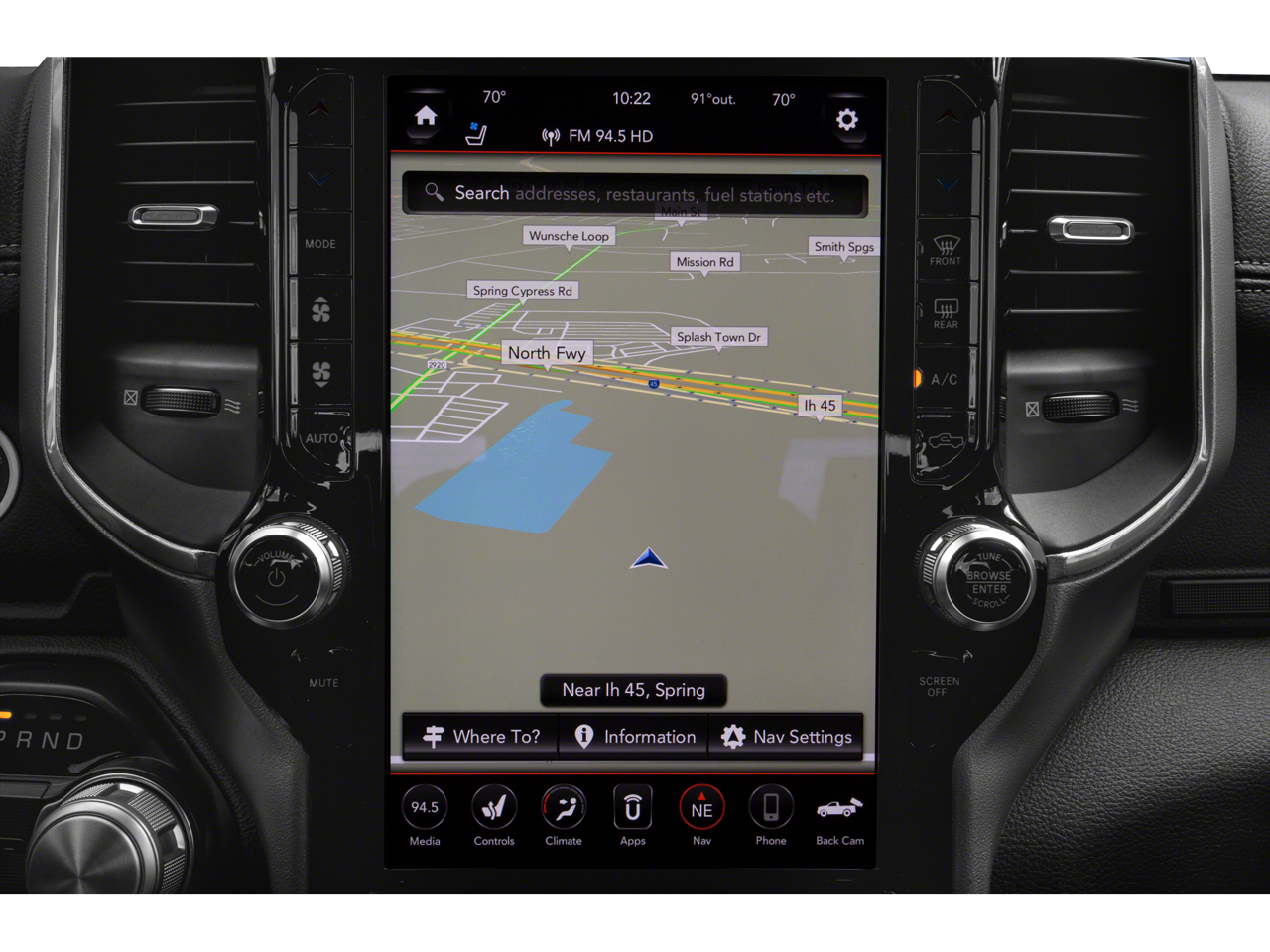 This 2021 Ram 1500 is equipped with Laramie Level 2 Equipment Group (DISC) (1-Yr SiriusXM Guardian Trial, 4G LTE Wi-Fi Hot Spot, 5-Year SiriusXM Traffic Service, 5-Year SiriusXM Travel Link Service, 8.4 Touchscreen Display, Apple CarPlay, Auto Dimming Exterior Passenger Mirror, Auto High Beam Headlamp Control, Blind Spot & Cross Path Detection, Disassociated Touchscreen Display, Foam Bottle Insert (Door Trim Panel), For Details, Visit DriveUconnect.com, For More Info, Call 800-643-2112, Google Android Auto, GPS Antenna Input, GPS Navigation, harman/kardon 19 Speaker Premium Sound, HD Radio, Heated Second Row Seats, Integrated Center Stack Radio, Integrated Voice Command w/Bluetooth®, ParkSense Front/Rear Park Assist w/Stop, Radio: Uconnect 4C Nav w/8.4 Display, Rain Sensitive Windshield Wipers, Rear 60/40 Folding Split Recline Seat, Rear Underseat Compartment Storage, Remote Tailgate Release, SiriusXM Radio Service, SiriusXM Satellite Radio, SiriusXM Traffic Plus, SiriusXM Travel Link, Tailgate Ajar Warning Lamp, and USB Host Flip), Quick Order Package 27H Laramie, Sport Appearance Package (Black Interior Accents, Body Color Door Handles, Body Color Exterior Mirrors, Body Color Front Bumper, Body Color Premium Power Mirrors, Body Color Rear Bumper w/Step Pads, Grille Surround 3 Body Color Tex 2 Black, Sport Decal, Sport Performance Hood, and Wheels: 20 x 9 Premium Painted w/Inserts), #1 Seat Foam Cushion, 10 Speakers, 12 Touchscreen Display, 3 Rear Seat Head Restraints, 3.21 Rear Axle Ratio, 4 Way Front Headrests, 4-Wheel Disc Brakes, 48V Belt Starter Generator, ABS brakes, Adjustable pedals, Air Conditioning, Alloy wheels, AM/FM radio: SiriusXM, Apple CarPlay/Android Auto, Audio memory, Auto-dimming door mirrors, Auto-dimming Rear-View mirror, Automatic temperature control, Brake assist, Bumpers: chrome, Chrome Exterior Mirrors, Compass, Delay-off headlights, Driver door bin, Driver Seat Memory, Driver vanity mirror, Dual front impact airbags, Dual front side impact airbags, Electronic Stability Control, Front anti-roll bar, Front Center Armrest w/Storage, Front dual zone A/C, Front fog lights, Front License Plate Bracket, Front reading lights, Front Seat Back Map Pockets, Front wheel independent suspension, Fully automatic headlights, Garage door transmitter, Heated door mirrors, Heated Front Seats, Heated front seats, Heated Steering Wheel, Heated steering wheel, Illuminated entry, Leather steering wheel, Leather Trim 40/20/40 Bench Seat, Low tire pressure warning, Memory seat, MOPAR Front & Rear Rubber Floor Mats, Occupant sensing airbag, Outside temperature display, Overhead airbag, Overhead console, Panic alarm, ParkView Rear Back-Up Camera, Passenger door bin, Passenger vanity mirror, Pedal memory, Power 4-Way Driver Lumbar Adjust, Power 4-Way Passenger Lumbar Adjust, Power 8-Way Driver & Passenger Seats, Power door mirrors, Power driver seat, Power passenger seat, Power steering, Power windows, Radio data system, Radio: Uconnect 12 w/Navigation, Radio: Uconnect 4 w/8.4 Display, Rear anti-roll bar, Rear seat center armrest, Rear step bumper, Rear Wheelhouse Liners, Rear window defroster, Remote keyless entry, Security system, SiriusXM w/360L, Speed control, Split folding rear seat, Steering wheel mounted audio controls, Tachometer, Telescoping steering wheel, Tilt steering wheel, Traction control, Trip computer, Turn signal indicator mirrors, Variably intermittent wipers, Ventilated Front Seats, Ventilated front seats, Voltmeter, Wheel to Wheel Side Steps, Wheels: 18 x 8 Aluminum Base Painted, and Wheels: 20 x 9 Premium Paint/PolisheD.