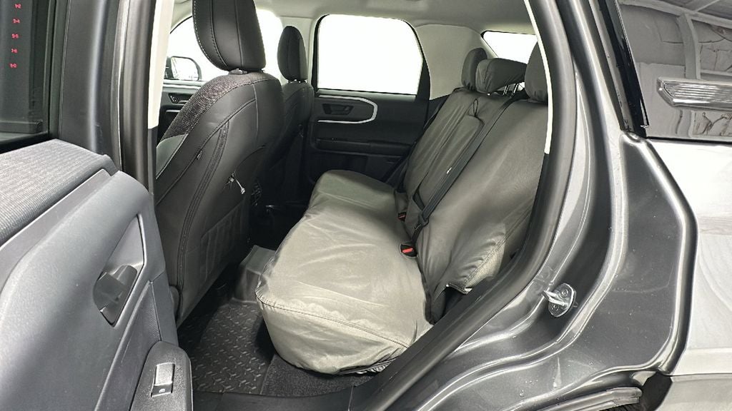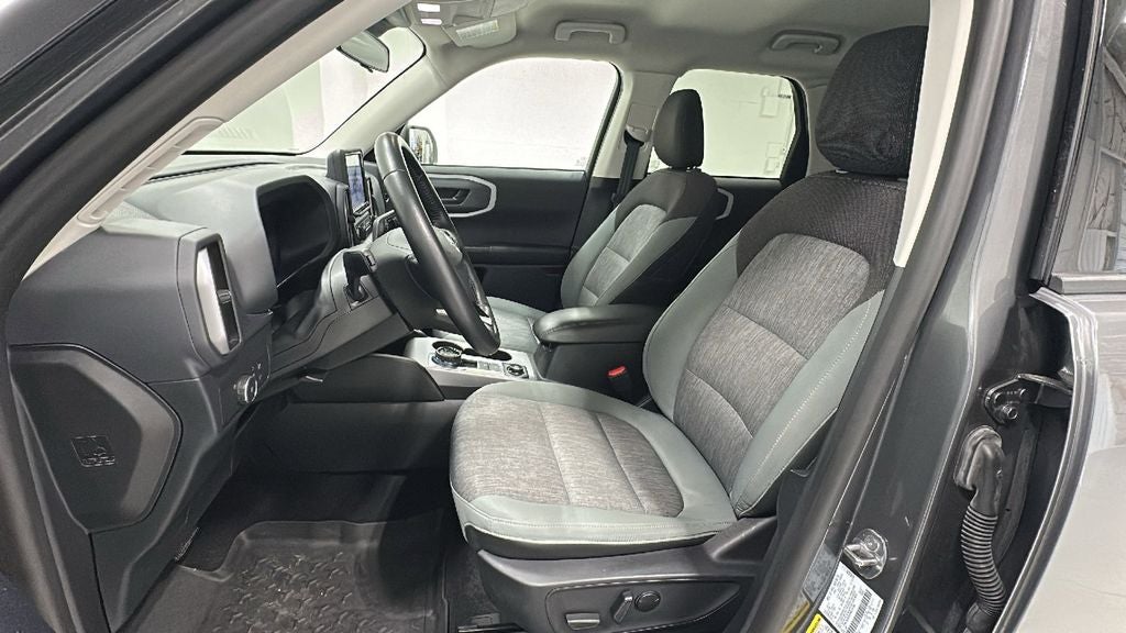 This 2022 Ford Bronco Sport is equipped with Class II Trailer Tow Package w/Trailer Sway Control, Convenience Package (Front Driver & Passenger Seatback Zipper Pockets, Heated Front Bucket Seats, Intelligent Access (Lock/Unlock), Leather-Wrapped Steering Wheel, LED Fog Lamps, Rear Parking Sensors, Universal Garage Door Opener (UGDO), and Wireless Charging Pad), Equipment Group 200A, 3.80 Axle Ratio, 4-Wheel Disc Brakes, 4G LTE Wi-Fi Hotspot Credit, 6 Speakers, ABS brakes, Air Conditioning, Alloy wheels, AM/FM radio: SiriusXM, AM/FM Stereo, Auto High-beam Headlights, Automatic temperature control, Brake assist, Compass, Delay-off headlights, Driver door bin, Driver vanity mirror, Dual front impact airbags, Dual front side impact airbags, Electronic Stability Control, Emergency communication system: SYNC 3 911 Assist, Four wheel independent suspension, Front & Rear Floor Liners, Front anti-roll bar, Front Bucket Seats, Front Center Armrest, Front reading lights, Fully automatic headlights, Heated door mirrors, Illuminated entry, Knee airbag, Low tire pressure warning, Occupant sensing airbag, Outside temperature display, Overhead airbag, Overhead console, Panic alarm, Passenger door bin, Passenger vanity mirror, Power door mirrors, Power steering, Power windows, Radio data system, Rear anti-roll bar, Rear reading lights, Rear seat center armrest, Rear window defroster, Rear window wiper, Remote keyless entry, Roof rack: rails only, Roof-Rail Crossbars I (DIO), Rubberized Second Row Seat Backs, Security system, SiriusXM Radio, Speed control, Speed-sensing steering, Speed-Sensitive Wipers, Split folding rear seat, Steering wheel mounted audio controls, SYNC 3 Communications & Entertainment System, SYNC 3/Apple CarPlay/Android Auto, Tachometer, Telescoping steering wheel, Tilt steering wheel, Traction control, Trip computer, Unique Cloth Front Bucket Seats, Variably intermittent wipers, and Wheels: 17 Carbonized Gray-Painted Aluminum.