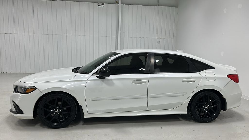 This 2022 Honda Civic is equipped with Black Cloth, 4-Wheel Disc Brakes, 8 Speakers, ABS brakes, Adaptive Cruise Control: Adaptive Cruise Control (ACC) with Low-Speed Follow, Air Conditioning, Alloy wheels, AM/FM radio, Apple CarPlay/Android Auto, Auto High-beam Headlights, Automatic temperature control, Brake assist, Bumpers: body-color, Cloth Seat Trim, Delay-off headlights, Driver door bin, Driver vanity mirror, Dual front impact airbags, Dual front side impact airbags, Electronic Stability Control, Emergency communication system: HondaLink, Exterior Parking Camera Rear, Forward collision: Collision Mitigation Braking System (CMBS) + FCW mitigation, Four wheel independent suspension, Front anti-roll bar, Front Bucket Seats, Front Center Armrest, Front reading lights, Fully automatic headlights, Illuminated entry, Knee airbag, Leather Shift Knob, Leather steering wheel, Low tire pressure warning, Occupant sensing airbag, Outside temperature display, Overhead airbag, Panic alarm, Passenger door bin, Passenger vanity mirror, Power door mirrors, Power steering, Power windows, Radio data system, Radio: 180-Watt AM/FM Audio System, Rear anti-roll bar, Rear side impact airbag, Rear window defroster, Remote keyless entry, Security system, Speed control, Speed-sensing steering, Steering wheel mounted audio controls, Tachometer, Telescoping steering wheel, Tilt steering wheel, Traction control, Trip computer, and Wheels: 18 Gloss Black Alloy.