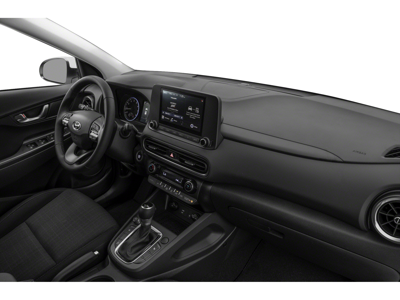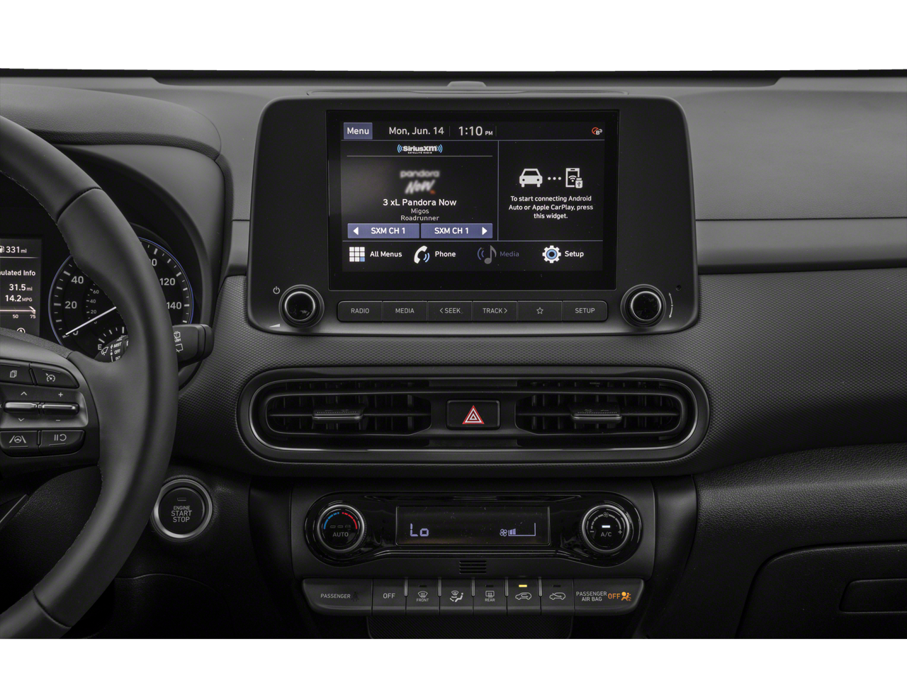 This 2022 Hyundai Kona is equipped with Option Group 01, Hyundai Certified Used Vehicles Certified, 4-Wheel Disc Brakes, 5.715 Axle Ratio, 6 Speakers, ABS brakes, Air Conditioning, Alloy wheels, AM/FM radio: SiriusXM, Apple CarPlay & Android Auto, Brake assist, Bumpers: body-color, Cargo Net, Cargo Tray, Carpeted Floor Mats, Cloth Seat Trim, Delay-off headlights, Driver door bin, Driver vanity mirror, Dual front impact airbags, Dual front side impact airbags, Electronic Stability Control, Emergency communication system: Blue Link Connected Car Service (3-year complimentary subscription), Exterior Parking Camera Rear, First Aid Kit, Four wheel independent suspension, Front & Rear Mudguards, Front anti-roll bar, Front Bucket Seats, Front Center Armrest, Front reading lights, Fully automatic headlights, Heated door mirrors, Illuminated entry, Low tire pressure warning, Occupant sensing airbag, Overhead airbag, Overhead console, Panic alarm, Passenger door bin, Passenger vanity mirror, Power door mirrors, Power steering, Power windows, Radio: AM/FM/HD Radio/SiriusXM Audio System, Rear anti-roll bar, Rear seat center armrest, Rear window defroster, Rear window wiper, Remote keyless entry, Security system, Speed control, Speed-sensing steering, Split folding rear seat, Spoiler, Steering wheel mounted audio controls, Tachometer, Telescoping steering wheel, Tilt steering wheel, Traction control, Trip computer, Turn signal indicator mirrors, Variably intermittent wipers, and Wheels: 17 x 7.0J Alloy.