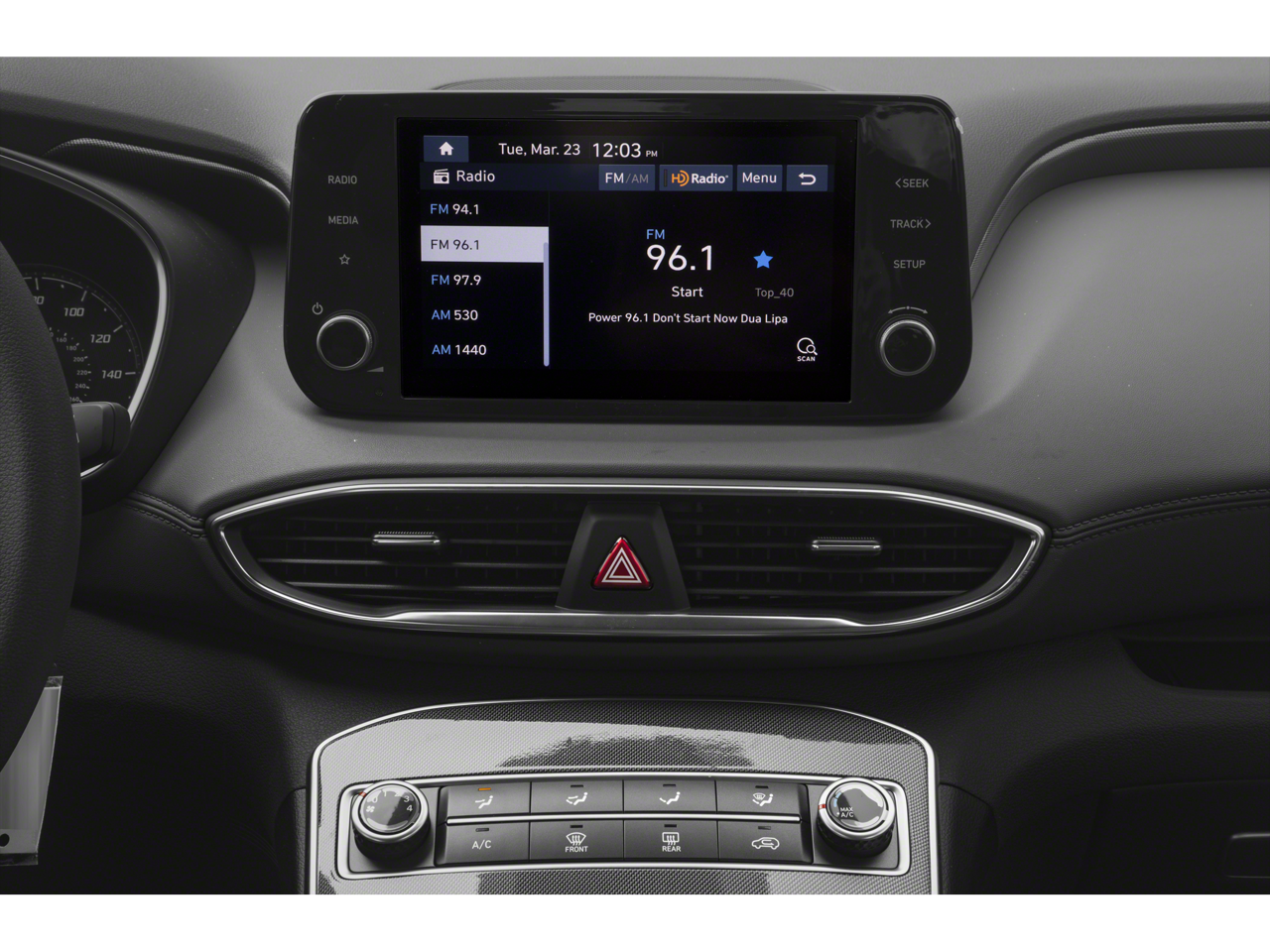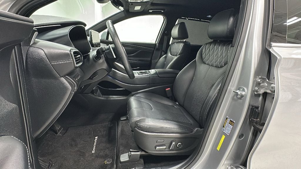 This 2022 Hyundai Santa Fe is equipped with Option Group 01, Hyundai Certified Used Vehicles Certified, AWD, Black Leather, Navigation System, 12 Speakers, 4-Wheel Disc Brakes, ABS brakes, Air Conditioning, Alloy wheels, AM/FM radio: SiriusXM, Apple CarPlay & Android Auto, Auto High-beam Headlights, Auto-dimming Rear-View mirror, Automatic temperature control, Axle Ratio: 3.316, Brake assist, Bumper Applique, Bumpers: body-color, Cargo Cover/Screen, Cargo Net, Cargo Tray, Carpeted Floor Mats, Delay-off headlights, Driver door bin, Driver vanity mirror, Dual front impact airbags, Dual front side impact airbags, Electronic Stability Control, Emergency communication system, First Aid Kit, Four wheel independent suspension, Front anti-roll bar, Front Bucket Seats, Front Center Armrest, Front dual zone A/C, Front reading lights, Fully automatic headlights, Garage door transmitter: HomeLink, harman/kardon® Speakers, Heads-Up Display, Heated & Ventilated Front Bucket Seats, Heated door mirrors, Heated front seats, Heated rear seats, Heated steering wheel, Illuminated entry, Leather steering wheel, Low tire pressure warning, Memory seat, Occupant sensing airbag, Outside temperature display, Overhead airbag, Overhead console, Panic alarm, Passenger door bin, Passenger vanity mirror, Power door mirrors, Power driver seat, Power Liftgate, Power moonroof, Power passenger seat, Power steering, Power windows, Quilted Premium Nappa Leather Seat Trim, Radio: AM/FM Harman Kardon Display Audio, Rain sensing wipers, Rear anti-roll bar, Rear seat center armrest, Rear window defroster, Rear window wiper, Remote keyless entry, Security system, Speed control, Speed-sensing steering, Split folding rear seat, Spoiler, Steering wheel mounted audio controls, Tachometer, Telescoping steering wheel, Tilt steering wheel, Traction control, Trip computer, Turn signal indicator mirrors, Variably intermittent wipers, Ventilated front seats, Wheel Locks, and Wheels: 20 x 8.0J Alloy.