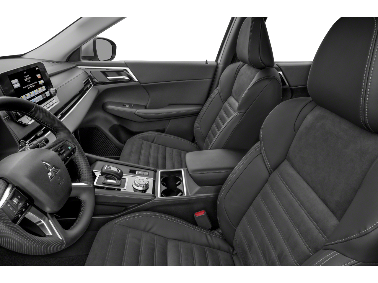 This 2022 Mitsubishi Outlander is equipped with Navigation system: Powered by TOMTOM, 3rd row seats: split-bench, 4-Wheel Disc Brakes, ABS brakes, Air Conditioning, Alloy wheels, AM/FM radio: SiriusXM, Android Auto & Apple CarPlay, Auto High-beam Headlights, Automatic temperature control, Axle Ratio: 5.694, Brake assist, Bumpers: body-color, Driver door bin, Driver vanity mirror, Dual front impact airbags, Dual front side impact airbags, Electronic Stability Control, Emergency communication system: Mitsubishi Connect w/ 24-month trial, Four wheel independent suspension, Front anti-roll bar, Front Bucket Seats, Front Center Armrest w/Storage, Front dual zone A/C, Front fog lights, Front reading lights, Fully automatic headlights, Heated door mirrors, Heated Front Bucket Seats, Heated front seats, Illuminated entry, Knee airbag, Leather Shift Knob, Leather steering wheel, Low tire pressure warning, Occupant sensing airbag, Outside temperature display, Overhead airbag, Overhead console, Panic alarm, Passenger door bin, Passenger vanity mirror, Power door mirrors, Power driver seat, Power Liftgate, Power steering, Power windows, Radio data system, Radio: AM/FM 9.0 Navigation w/Smartphone Link, Rain sensing wipers, Rear anti-roll bar, Rear seat center armrest, Rear side impact airbag, Rear window defroster, Rear window wiper, Reclining 3rd row seat, Remote keyless entry, Security system, Speed control, Speed-Sensitive Wipers, Split folding rear seat, Spoiler, Steering wheel mounted audio controls, Synthetic Leather Seat Trim, Tachometer, Telescoping steering wheel, Tilt steering wheel, Traction control, Trip computer, Turn signal indicator mirrors, Variably intermittent wipers, and Wheels: 20 x 8J Two-Tone Alloy.