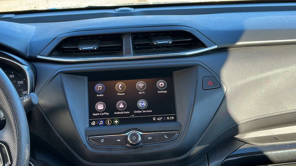 This 2023 Chevrolet TrailBlazer is equipped with Preferred Equipment Group 1LT, 2-Way Adjustable Front Head Restraints, 2-Way Power Driver Lumbar Seat Adjuster, 4-Way Manual Front Passenger Seat Adjuster, 4-Wheel Disc Brakes, 5.45 Axle Ratio, 6 Speakers, 6-Speaker Audio System Feature, 7 Diagonal Color Touchscreen, 8-Way Power Driver Seat Adjuster, ABS brakes, Air Conditioning, Alloy wheels, AM/FM radio: SiriusXM, Auto High-beam Headlights, Brake assist, Bumpers: body-color, Cloth Seat Trim, Compass, Delay-off headlights, Driver door bin, Driver vanity mirror, Dual front impact airbags, Dual front side impact airbags, Electronic Stability Control, Emergency communication system: OnStar and Chevrolet connected services capable, Exterior Parking Camera Rear, Flat-Folding Front Passenger Seatback, Front anti-roll bar, Front Bucket Seats, Front Center Armrest, Front fog lights, Front License Plate Bracket, Front reading lights, Front wheel independent suspension, Fully automatic headlights, Heated door mirrors, Heated Driver & Front Passenger Seats, Heated front seats, Illuminated entry, Knee airbag, Low tire pressure warning, Occupant sensing airbag, Overhead airbag, Overhead console, Panic alarm, Passenger door bin, Passenger vanity mirror, Power door mirrors, Power driver seat, Power steering, Power windows, Radio data system, Radio: Chevrolet Infotainment 3 System, Rear side impact airbag, Rear window defroster, Rear window wiper, Remote keyless entry, Ride & Handling Suspension, Security system, SiriusXM Radio, Speed control, Split folding rear seat, Spoiler, Steering wheel mounted audio controls, Tachometer, Telescoping steering wheel, Tilt steering wheel, Traction control, Trip computer, Variably intermittent wipers, Wheels: 17 High Gloss Black Machined Aluminum, and Wireless Apple CarPlay/Android Auto.