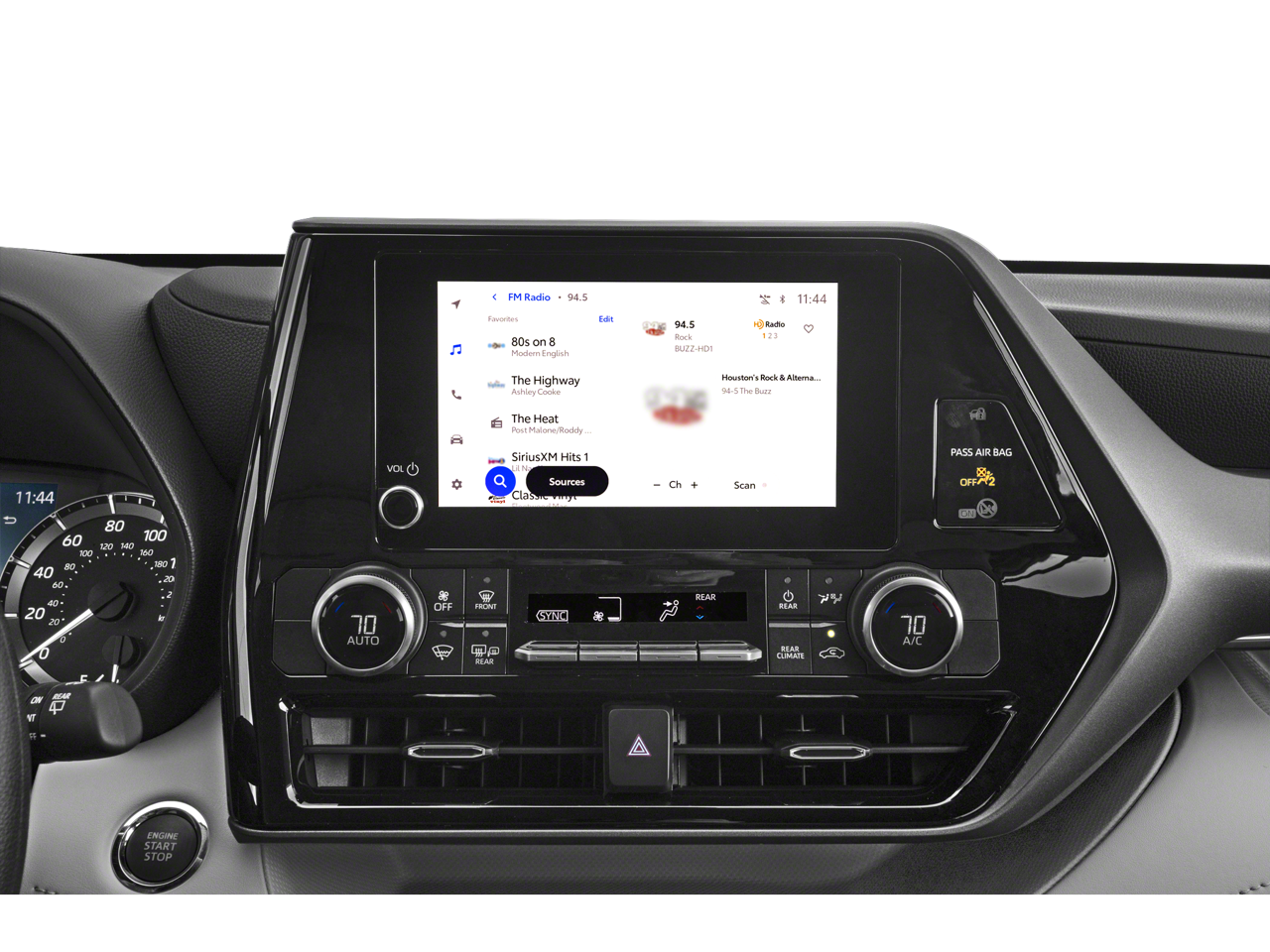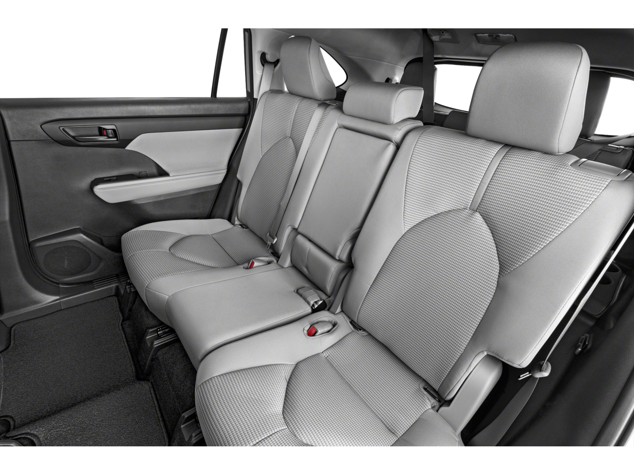 This 2023 Toyota Highlander is equipped with 18 Painted Alloy Wheels, 3.329 Axle Ratio, 3rd row seats: split-bench, 4-Wheel Disc Brakes, 6 Speakers, ABS brakes, Air Conditioning, All Weather Floor & Cargo Liner (TMS), Alloy wheels, AM/FM radio: SiriusXM, Apple CarPlay/Android Auto, Auto High-beam Headlights, Automatic temperature control, Body Side Moldings (TMS), Brake assist, Bumpers: body-color, Cargo Cover (TMS), Clear Rear Bumper Applique (TMS), Delay-off headlights, Door Edge Guards (TMS), Driver door bin, Driver vanity mirror, Dual front impact airbags, Dual front side impact airbags, Electronic Stability Control, Emergency Assistance Kit (TMS), Emergency communication system: Safety Connect (up to 10-year trial subscription), Exterior Parking Camera Rear, Fabric Seat Trim, First Aid Kit (TMS), Four wheel independent suspension, Front anti-roll bar, Front Bucket Seats, Front Center Armrest, Front dual zone A/C, Front fog lights, Front reading lights, Fully automatic headlights, Heated door mirrors, Illuminated Door Sills (TMS), Illuminated entry, Knee airbag, Leather Shift Knob, Leather steering wheel, Low tire pressure warning, Occupant sensing airbag, Outside temperature display, Overhead airbag, Overhead console, Panic alarm, Passenger door bin, Passenger vanity mirror, Power door mirrors, Power driver seat, Power Liftgate, Power steering, Power windows, Quick Charge Cables (TMS), Radio: 8 Toyota Audio Multimedia, Rear air conditioning, Rear anti-roll bar, Rear reading lights, Rear seat center armrest, Rear window defroster, Rear window wiper, Reclining 3rd row seat, Remote keyless entry, Security system, Speed control, Speed-sensing steering, Split folding rear seat, Spoiler, Steering wheel mounted audio controls, Tachometer, Telescoping steering wheel, Tilt steering wheel, Traction control, Trip computer, Turn signal indicator mirrors, and Variably intermittent wipers.