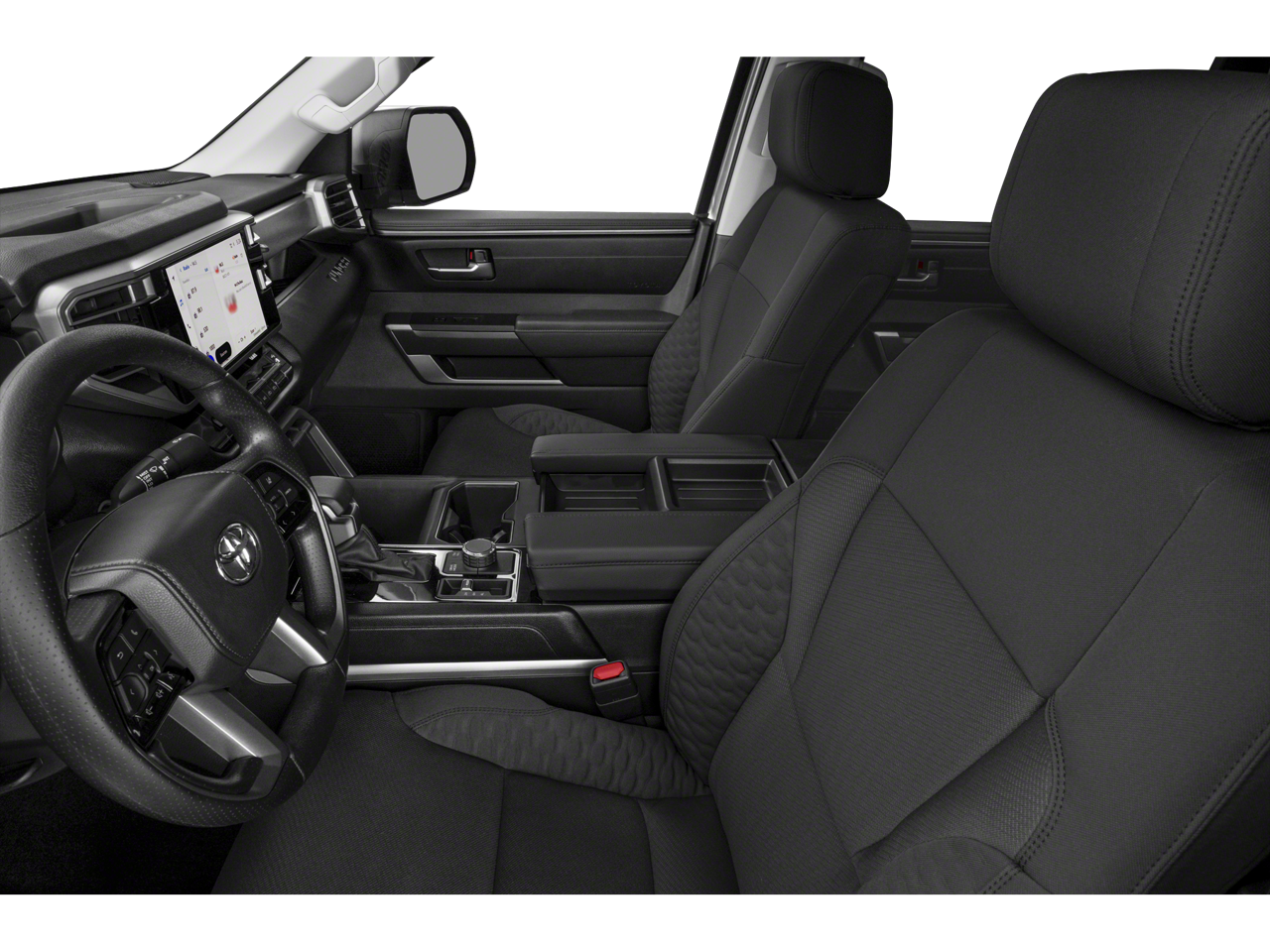 This 2023 Toyota Tundra is equipped with TRD Off-Road Premium Package (Bedside TRD Off Road Decal, Black Grille w/Chrome Surround, Front & Rear Mud Guards, Front Spoiler Delete, SofTex Seat Trim, and TRD Off-Road Suspension w/Bilstein Shocks), 4WD, Black w/Leather Seat Trim, ABS brakes, Active Cruise Control, Alloy wheels, Electronic Stability Control, Heated door mirrors, Illuminated entry, Low tire pressure warning, Remote keyless entry, Traction control, 18 Alloy Wheels, 3.31 Axle Ratio, 4-Way Adjustable Front Bucket Seats, 4-Wheel Disc Brakes, 9 Speakers, Air Conditioning, AM/FM radio: SiriusXM, Apple CarPlay/Android Auto, Auto High-beam Headlights, Automatic temperature control, Brake assist, Bumpers: body-color, Delay-off headlights, Driver door bin, Driver vanity mirror, Dual front impact airbags, Dual front side impact airbags, Emergency communication system: Safety Connect (10-year trial), Exterior Parking Camera Rear, Fabric Seat Trim (FB), Front anti-roll bar, Front Bucket Seats, Front Center Armrest, Front fog lights, Front reading lights, Front wheel independent suspension, Fully automatic headlights, Knee airbag, Occupant sensing airbag, Outside temperature display, Overhead airbag, Overhead console, Panic alarm, Passenger door bin, Passenger vanity mirror, Power door mirrors, Power steering, Power windows, Radio data system, Radio: Audio Multimedia System, Rear reading lights, Rear step bumper, Rear window defroster, Safety Connect, Security system, Speed control, Speed-sensing steering, Split folding rear seat, Steering wheel mounted audio controls, Tachometer, Telescoping steering wheel, Tilt steering wheel, Trip computer, Variably intermittent wipers, and Voltmeter.