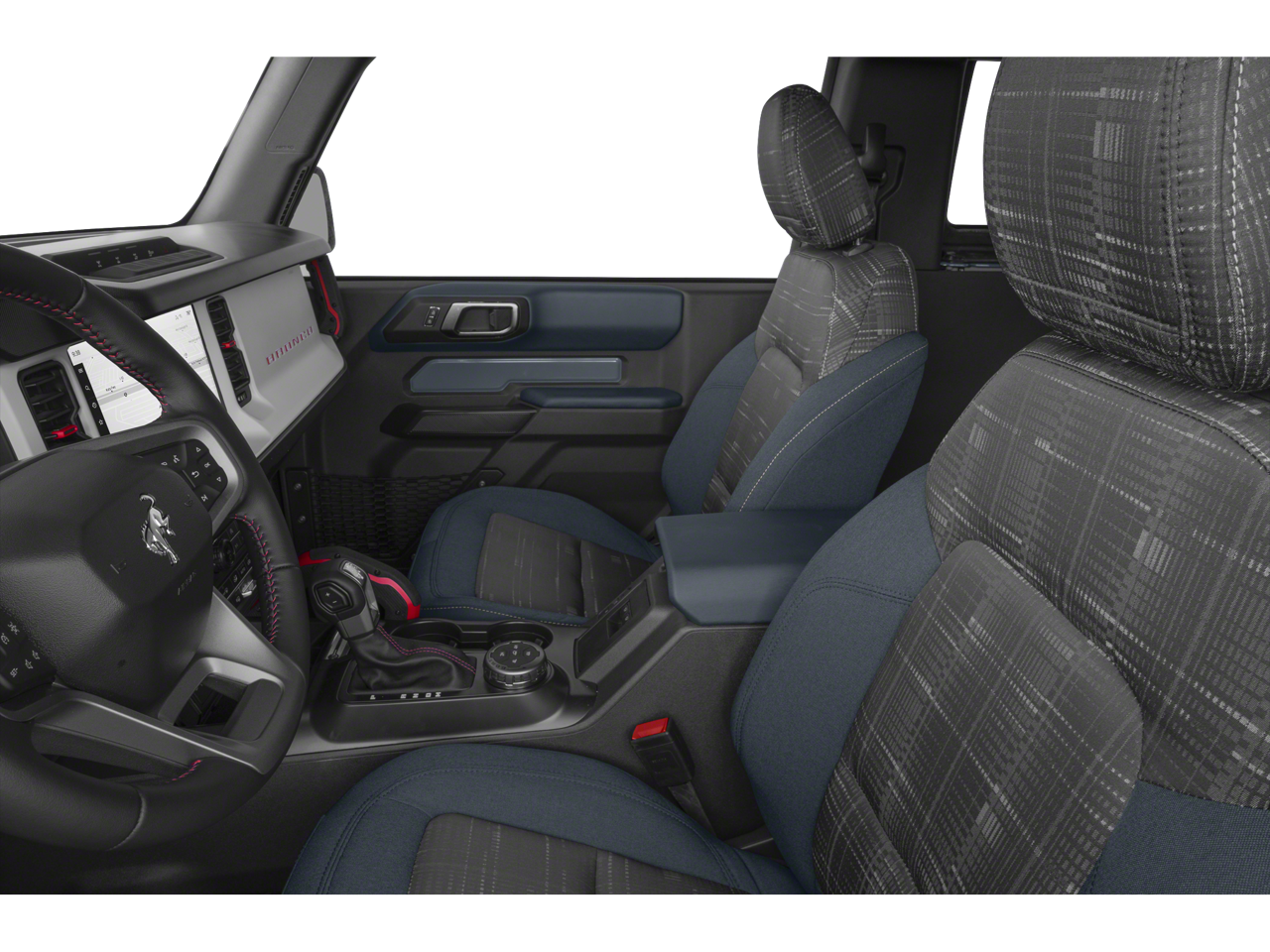 This 2024 Ford Bronco is equipped with Convertible HardTop, Navigation system: Connected Navigation, 4-Wheel Disc Brakes, 4.7 Axle Ratio, 7 Speakers, ABS brakes, Air Conditioning, Alloy wheels, AM/FM radio: SiriusXM with 360L, AM/FM Stereo, Auto High-beam Headlights, Auto-dimming Rear-View mirror, Automatic temperature control, Brake assist, Compass, Connected Navigation, Convertible roof lining, Delay-off headlights, Driver door bin, Driver vanity mirror, Dual front impact airbags, Dual front side impact airbags, Electronic Stability Control, Emergency communication system: 911 Assist, Exterior Parking Camera Rear, Front anti-roll bar, Front Bucket Seats, Front Center Armrest, Front dual zone A/C, Front fog lights, Front reading lights, Front wheel independent suspension, Fully automatic headlights, Glass rear window, Heated door mirrors, Heated front seats, Illuminated entry, Integrated roll-over protection, Leather Shift Knob, Low tire pressure warning, Occupant sensing airbag, Outside temperature display, Overhead airbag, Overhead console, Panic alarm, Passenger door bin, Passenger vanity mirror, Plaid Cloth Front Heated Bucket Seats, Power door mirrors, Power steering, Power windows, Radio data system, Rear window defroster, Rear window wiper, Remote keyless entry, Security system, SiriusXM Radio w/360L, Speed control, Split folding rear seat, Steering wheel mounted audio controls, SYNC 4, Tachometer, Telescoping steering wheel, Tilt steering wheel, Traction control, Trip computer, Variably intermittent wipers, and Wheels: 17 Unique White.