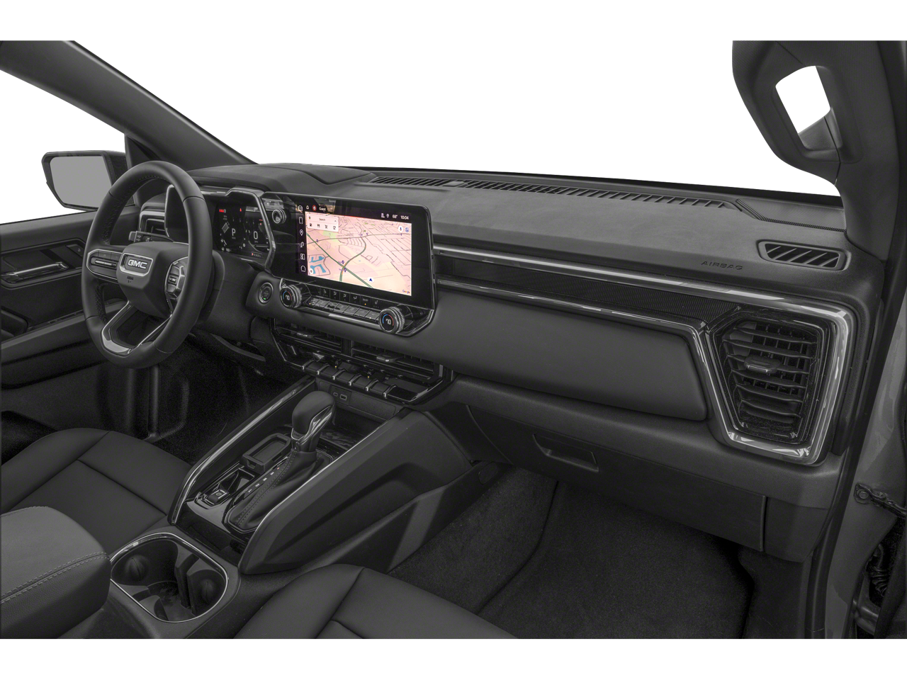 This 2024 GMC Canyon is equipped with Canyon Safety Plus Package (Rear Cross Traffic Braking and Ultrasonic Rear Park Assist), Convenience Package (120-Volt Bed Mounted Power Outlet, 2 Rear USB Ports in Center Console (Charge-Only), Driver & Front Passenger Illuminated Visors, Dual-Zone Automatic Air Conditioning, EZ-Lift & Lower Tailgate, Front LED Fog Lamps, Heated Power-Adjustable Outside Mirrors, Inside Rear-View Auto-Dimming Mirror, Interior Overhead Courtesy Light w/Dual Reading Lamp, Manual Rear-Sliding Window, MultiStow Tailgate, Rear of Console 120-Volt Power Outlet, Rear-Window Electric Defogger, Remote Vehicle Starter System, Tailgate Keyed Cylinder Lock, and Tilt & Telescopic Manual Steering Column), Preferred Equipment Group 2VL (Automatic Emergency Braking, Canyon Pro Safety, Following Distance Indicator, Forward Collision Alert, Front Pedestrian & Bicyclist Braking, IntelliBeam Automatic High Beam On/Off, and Lane Keep Assist w/Lane Departure Warning), Technology Package (Adaptive Cruise Control, HD Surround Vision, and Rear Pedestrian Alert), Navigation System, 1 Rear USB Ports in Center Console (Charge-Only), 2 1st Row USB Charge/Data Ports, 3.42 Rear Axle Ratio, 4-Way Manual Front Passenger Seat Adjuster, 4-Wheel Disc Brakes, 6 Speakers, 6-Speaker Audio System Feature, 6-Way Manual Driver Seat Adjuster, ABS brakes, Air Conditioning, Alloy wheels, AM/FM radio, Apple CarPlay/Android Auto, Auto High-beam Headlights, Automatic Stop/Start, Blind Zone Steering Assist, Brake assist, Bumpers: body-color, Cloth Seat Trim, Compass, Delay-off headlights, Driver door bin, Driver vanity mirror, Dual front impact airbags, Dual front side impact airbags, Electronic Stability Control, Front anti-roll bar, Front Bucket Seats, Front Center Armrest, Front Passenger Seatback Map Pocket, Front wheel independent suspension, Illuminated entry, Low tire pressure warning, Occupant sensing airbag, Outside temperature display, Overhead airbag, Overhead console, Panic alarm, Passenger door bin, Passenger vanity mirror, Power door mirrors, Power Inner Sliding Glass Sunroof w/Manual Shade, Power steering, Power windows, Radio data system, Radio: 11.3 Diagonal Premium GMC Infotainment Sys, Rear reading lights, Rear step bumper, Remote keyless entry, Security system, SiriusXM w/360L, Speed control, Speed-sensing steering, Split folding rear seat, Steering wheel mounted audio controls, Stop/Start System Disable Button Engine Control, Tachometer, Tilt steering wheel, Traction control, Trip computer, Variably intermittent wipers, Wheels: 18 x 8.5 Dark Gray Painted Aluminum, and Wireless Apple CarPlay/Wireless Android Auto.