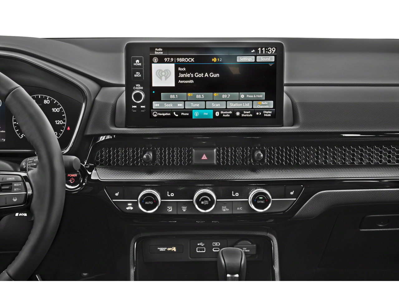 This 2024 Honda CR-V Hybrid is equipped with 2.0L I4 DOHC 16V, Navigation system: Honda Satellite-Linked Navigation System, 12 Speakers, 4-Wheel Disc Brakes, 4.438 Axle Ratio, ABS brakes, Adaptive Cruise Control: Adaptive Cruise Control (ACC) with Low-Speed Follow, Air Conditioning, Alloy wheels, AM/FM radio: SiriusXM, Auto High-beam Headlights, Auto-dimming Rear-View mirror, Automatic temperature control, Blind Spot Information (BSI) System warning, Brake assist, Bumpers: body-color, Compass, Delay-off headlights, Driver door bin, Driver vanity mirror, Dual front impact airbags, Dual front side impact airbags, Electronic Stability Control, Exterior Parking Camera Rear, Four wheel independent suspension, Front anti-roll bar, Front Bucket Seats, Front Center Armrest, Front dual zone A/C, Front reading lights, Fully automatic headlights, Heated door mirrors, Heated Front Bucket Seats, Heated front seats, Heated steering wheel, Illuminated entry, Knee airbag, Leather Seat Trim, Leather Shift Knob, Leather steering wheel, Low tire pressure warning, Memory seat, Occupant sensing airbag, Outside temperature display, Overhead airbag, Overhead console, Panic alarm, Passenger door bin, Passenger vanity mirror, Power door mirrors, Power driver seat, Power Liftgate, Power moonroof, Power passenger seat, Power steering, Power windows, Radio data system, Radio: Bose Premium Sound System w/Navigation, Rain sensing wipers, Rear anti-roll bar, Rear reading lights, Rear seat center armrest, Rear side impact airbag, Rear window defroster, Rear window wiper, Remote keyless entry, Security system, Speed control, Speed-sensing steering, Speed-Sensitive Wipers, Split folding rear seat, Spoiler, Steering wheel mounted audio controls, Telescoping steering wheel, Tilt steering wheel, Traction control, Trip computer, Turn signal indicator mirrors, Variably intermittent wipers, Wheels: 19 Berlina Black Alloy, and Wireless Apple CarPlay/Wireless Android Auto.