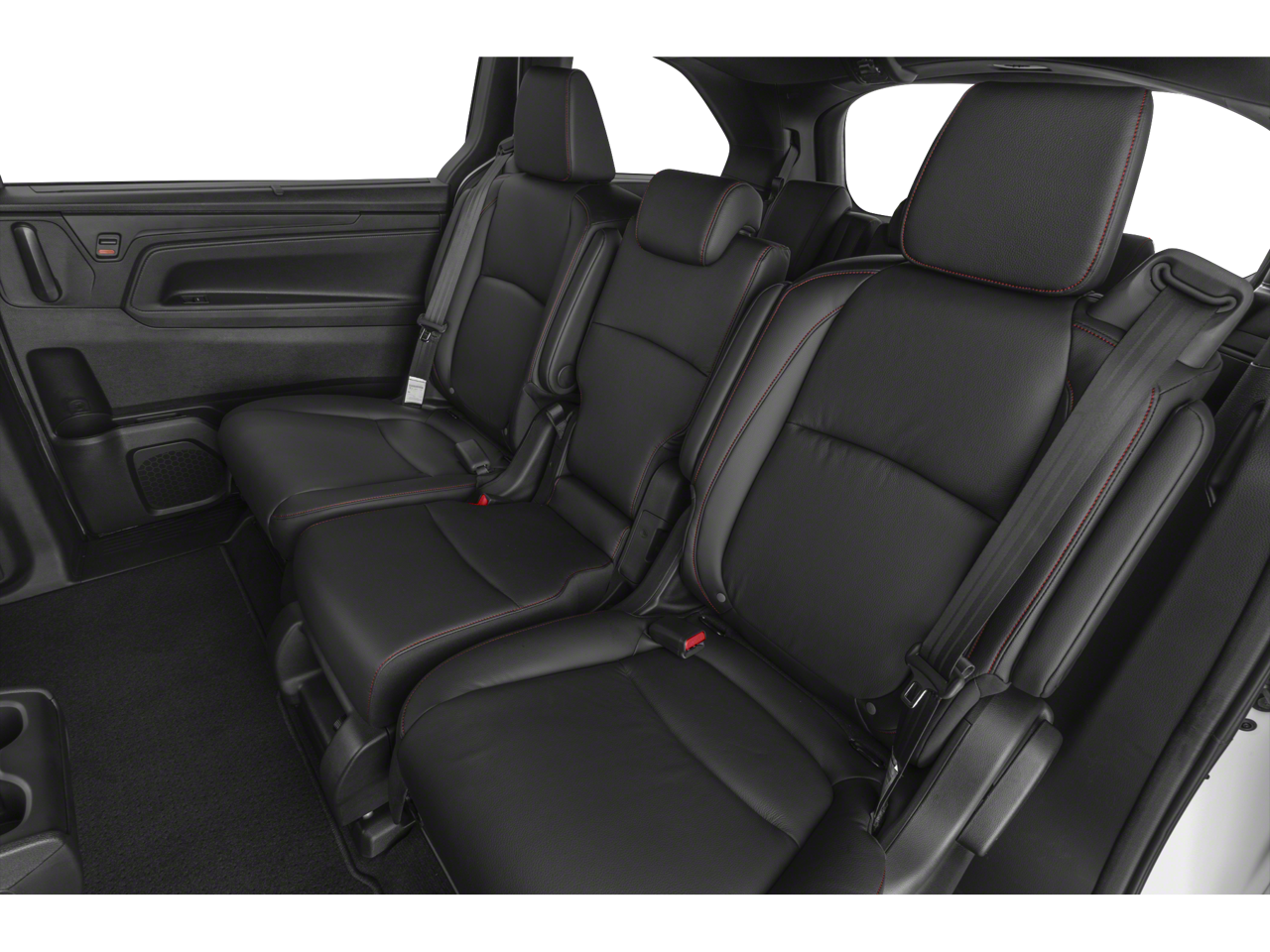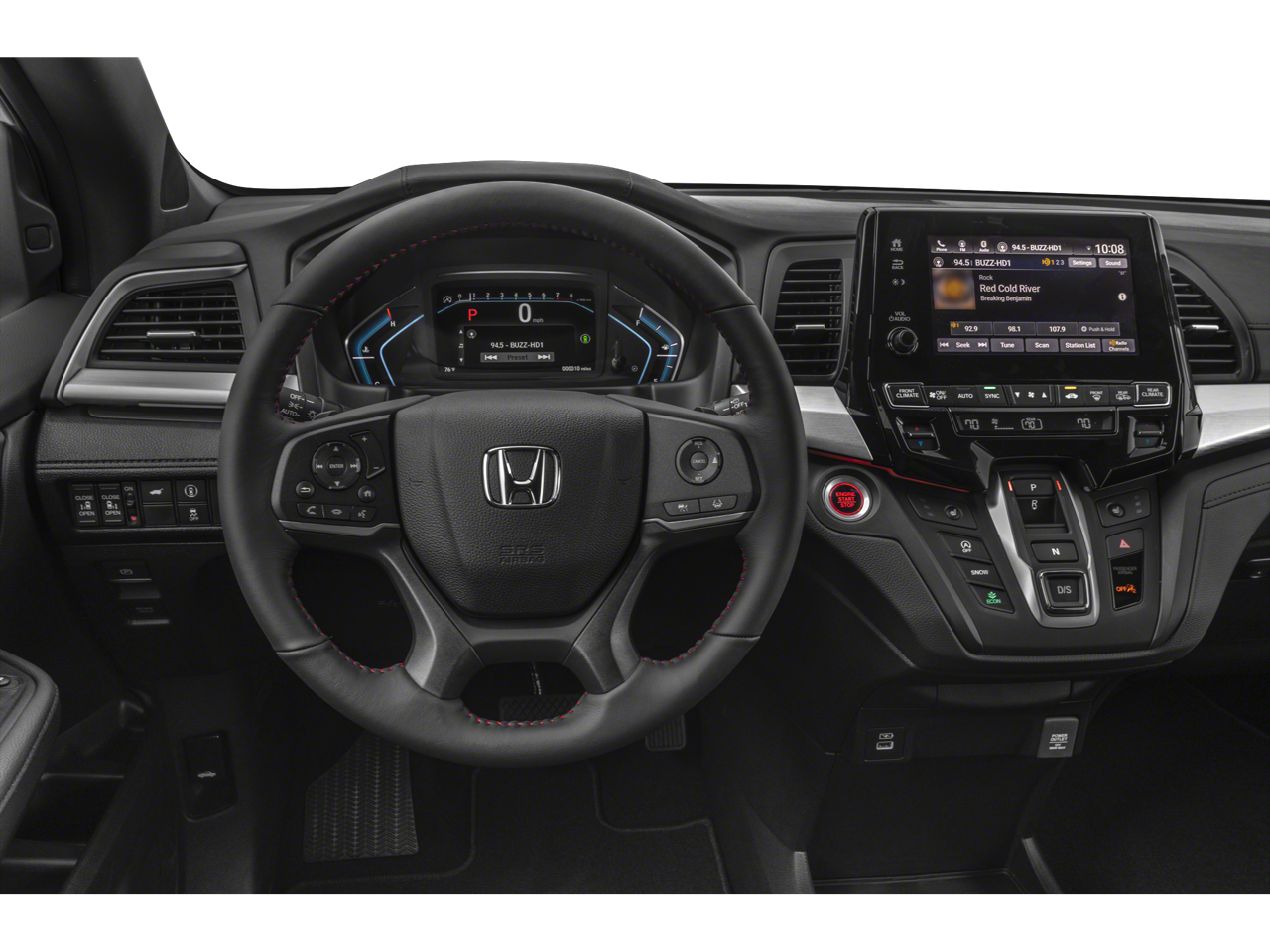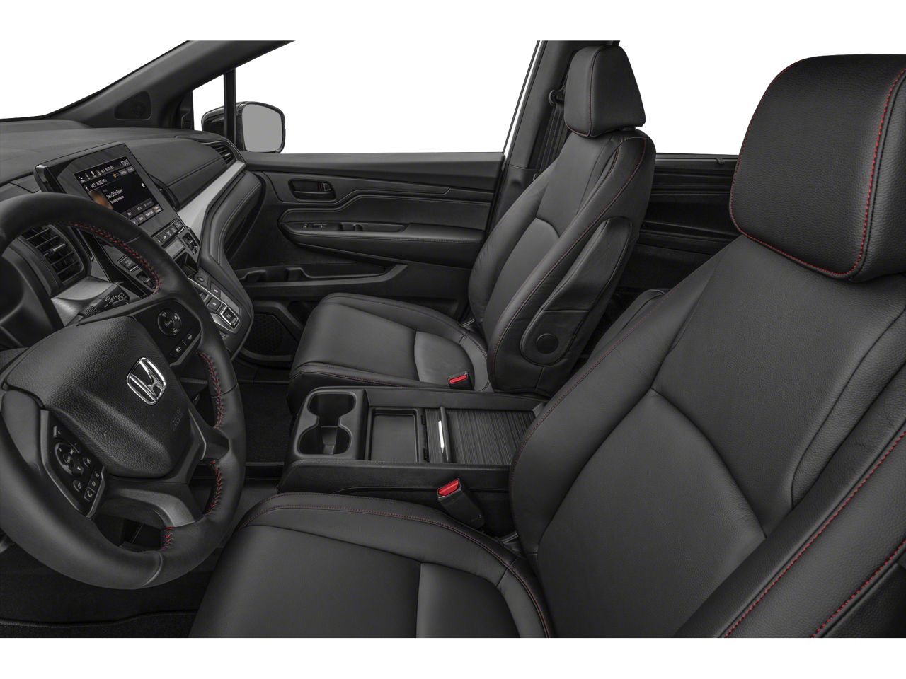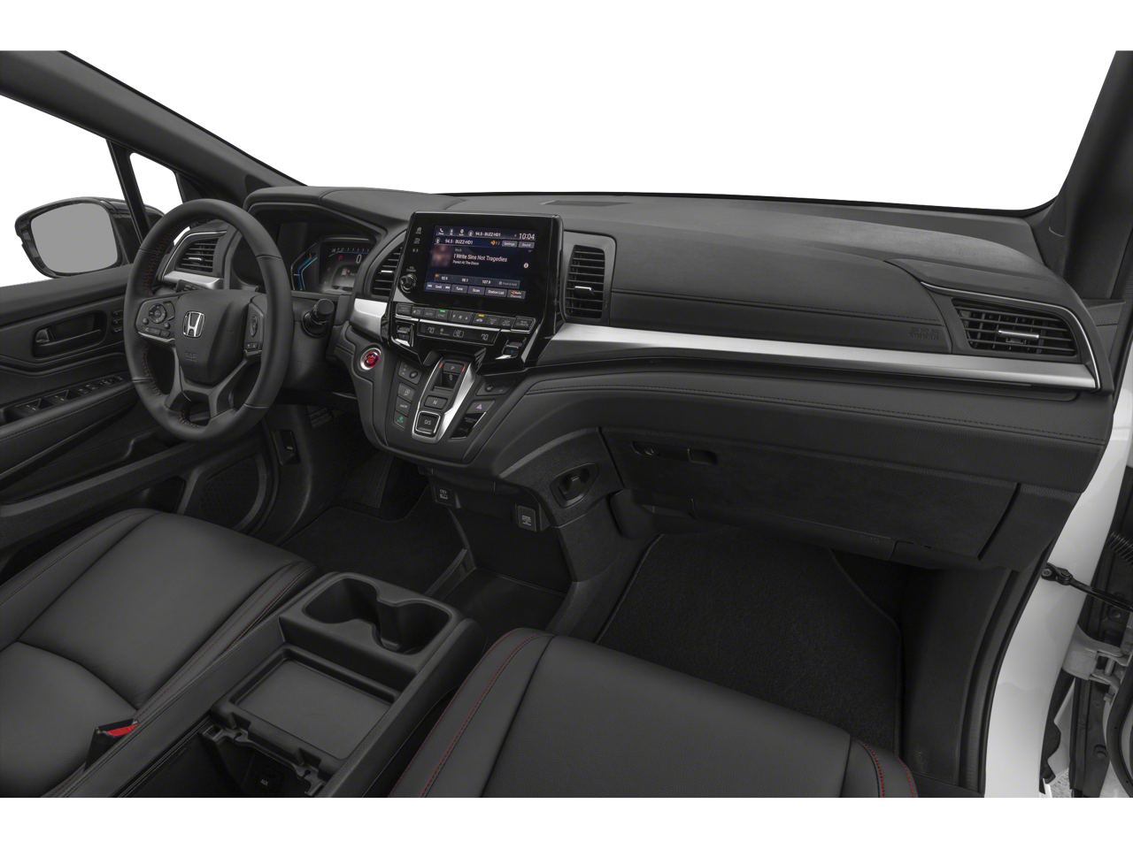 This 2024 Honda Odyssey is equipped with 3.61 Axle Ratio, 3rd row seats: split-bench, 4-Wheel Disc Brakes, 7 Speakers, A/V remote: CabinControl, ABS brakes, Adaptive Cruise Control: Adaptive Cruise Control (ACC) with Low-Speed Follow, Air Conditioning, Alloy wheels, AM/FM radio: SiriusXM, Anti-whiplash front head restraints, Apple CarPlay/Android Auto, Auto High-beam Headlights, Auto-dimming Rear-View mirror, Automatic temperature control, Blind Spot Information (BSI) System warning, Brake assist, Bumpers: body-color, Delay-off headlights, Driver door bin, Driver vanity mirror, Driver's Seat Mounted Armrest, Dual front impact airbags, Dual front side impact airbags, Electronic Stability Control, Exterior Parking Camera Rear, Four wheel independent suspension, Front anti-roll bar, Front Bucket Seats, Front dual zone A/C, Front fog lights, Front reading lights, Fully automatic headlights, Garage door transmitter: HomeLink, Heated door mirrors, Heated Front Bucket Seats, Heated front seats, Illuminated entry, Knee airbag, Lane departure: Lane Keeping Assist System (LKAS) active, Leather Seat Trim, Leather steering wheel, Low tire pressure warning, Memory seat, Occupant sensing airbag, Outside temperature display, Overhead airbag, Overhead console, Panic alarm, Passenger door bin, Passenger seat mounted armrest, Passenger vanity mirror, Power door mirrors, Power driver seat, Power Liftgate, Power moonroof, Power passenger seat, Power steering, Power windows, Radio data system, Radio: 160-Watt AM/FM/HD/SiriusXM Audio System, Rear air conditioning, Rear anti-roll bar, Rear reading lights, Rear seat center armrest, Rear window defroster, Rear window wiper, Reclining 3rd row seat, Remote keyless entry, Security system, Speed control, Speed-sensing steering, Speed-Sensitive Wipers, Split folding rear seat, Spoiler, Steering wheel mounted audio controls, Tachometer, Telescoping steering wheel, Tilt steering wheel, Traction control, Trip computer, Turn signal indicator mirrors, Variably intermittent wipers, and Wheels: 19 Gloss Black Alloy.
