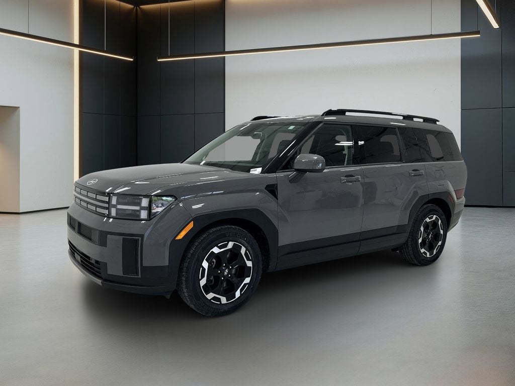 This 2024 Hyundai Santa Fe is equipped with Option Group 01, Hyundai Certified Used Vehicles Certified, Black Premium Synthetic, 18 x 7.5J Alloy Wheels, 3rd row seats: bench, 4-Wheel Disc Brakes, 6 Speakers, ABS brakes, Air Conditioning, Alloy wheels, AM/FM radio: SiriusXM, Apple CarPlay & Android Auto, Auto High-beam Headlights, Automatic temperature control, Axle Ratio: 3.316, Brake assist, Bumpers: body-color, Carpeted Floor Mats, Delay-off headlights, Driver door bin, Driver vanity mirror, Dual front impact airbags, Dual front side impact airbags, Electronic Stability Control, Emergency communication system, Exterior Parking Camera Rear, Four wheel independent suspension, Front anti-roll bar, Front Bucket Seats, Front Center Armrest, Front dual zone A/C, Front reading lights, Fully automatic headlights, H-Tex Leatherette Seat Trim, Heated door mirrors, Heated Front Bucket Seats, Heated front seats, Illuminated entry, Knee airbag, Leather steering wheel, Low tire pressure warning, Occupant sensing airbag, Outside temperature display, Overhead airbag, Overhead console, Panic alarm, Passenger door bin, Passenger vanity mirror, Power door mirrors, Power driver seat, Power Liftgate, Power steering, Power windows, Radio: AM/FM/HD Display Audio, Rear anti-roll bar, Rear seat center armrest, Rear side impact airbag, Rear window defroster, Rear window wiper, Remote keyless entry, Security system, Speed control, Speed-sensing steering, Split folding rear seat, Spoiler, Steering wheel mounted audio controls, Tachometer, Telescoping steering wheel, Tilt steering wheel, Tow Hitch, Traction control, Trip computer, Turn signal indicator mirrors, and Variably intermittent wipers.