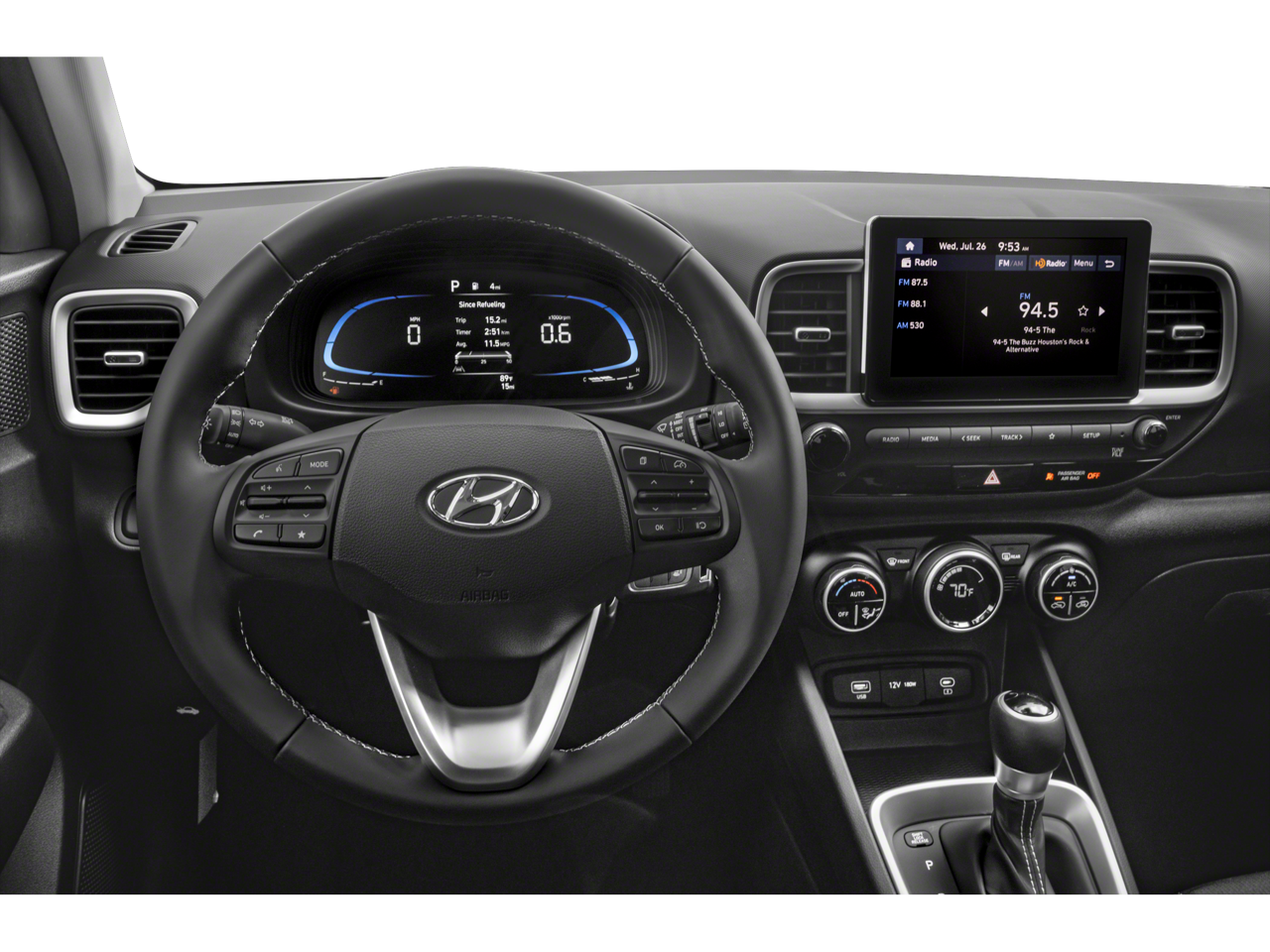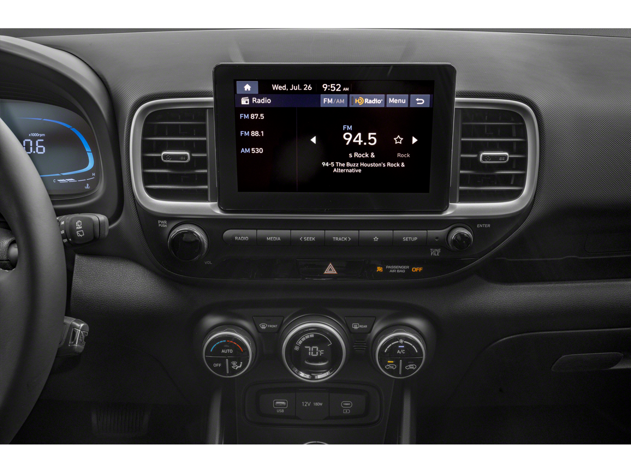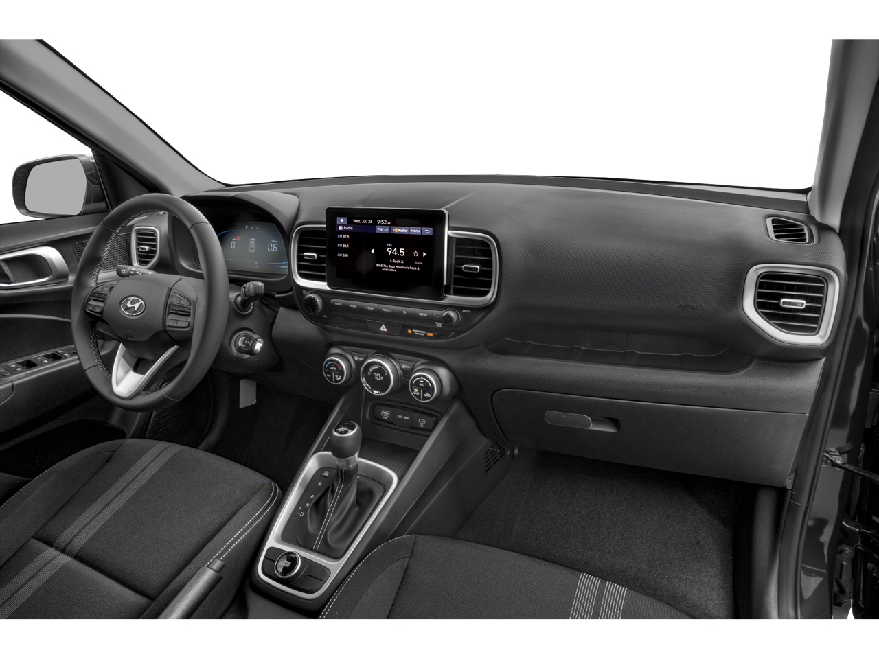 This 2024 Hyundai Venue is equipped with Option Group 01, Hyundai Certified Used Vehicles Certified, 4-Wheel Disc Brakes, 6 Speakers, 6.5J x 17 Alloy Wheels, ABS brakes, Air Conditioning, Alloy wheels, Apple CarPlay & Android Auto, Auto High-beam Headlights, Automatic temperature control, Brake assist, Bumpers: body-color, Cargo Net, Cargo Tray, Carpeted Floor Mats, Delay-off headlights, Driver door bin, Driver vanity mirror, Dual front impact airbags, Dual front side impact airbags, Electronic Stability Control, Front anti-roll bar, Front Bucket Seats, Front Center Armrest, Front reading lights, Front wheel independent suspension, Fully automatic headlights, Illuminated entry, Leather Shift Knob, Leather steering wheel, Low tire pressure warning, Mudguards, Occupant sensing airbag, Outside temperature display, Overhead airbag, Overhead console, Panic alarm, Passenger door bin, Passenger vanity mirror, Power door mirrors, Power steering, Power windows, Rear Seat Cup Holder, Rear window defroster, Rear window wiper, Remote keyless entry, Roof rack: rails only, Security system, Speed control, Speed-sensing steering, Split folding rear seat, Spoiler, Steering wheel mounted audio controls, Tachometer, Telescoping steering wheel, Tilt steering wheel, Traction control, Trip computer, and Variably intermittent wipers.