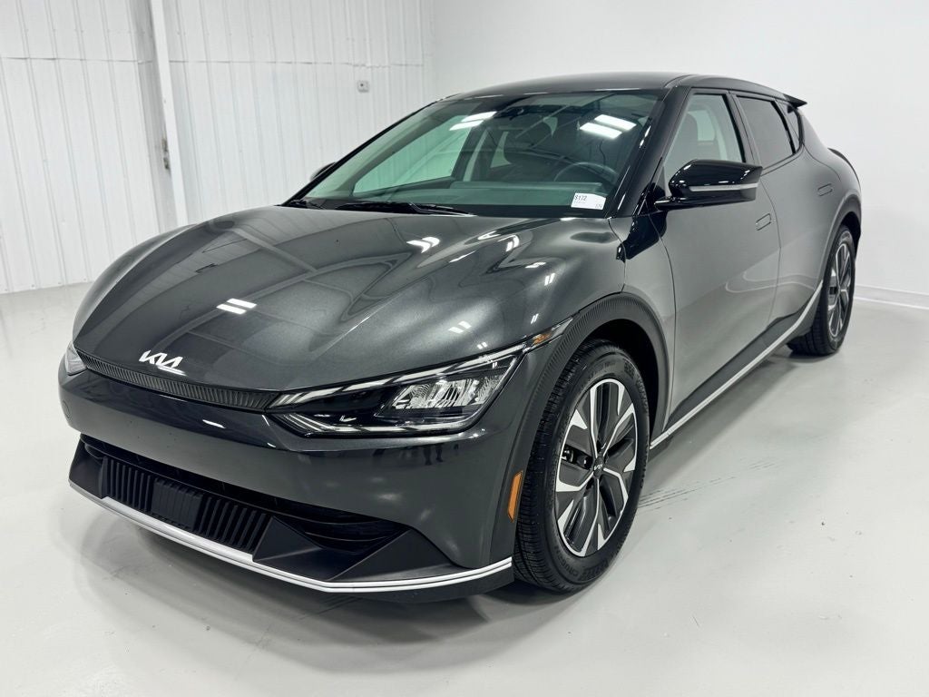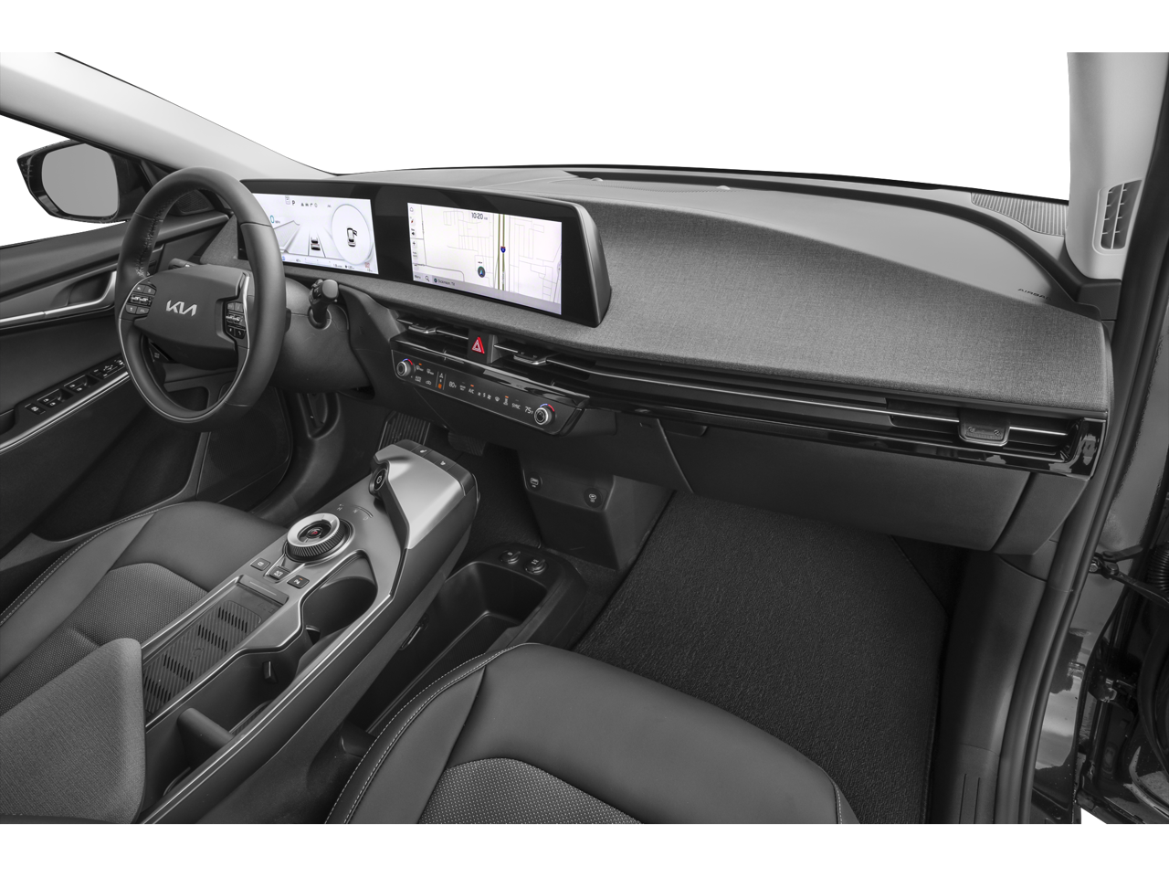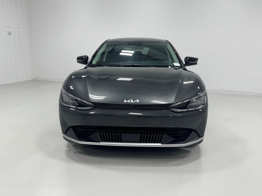 This 2024 Kia EV6 is equipped with Navigation system: AVN 5.0 Navigation System, 4-Wheel Disc Brakes, 6 Speakers, ABS brakes, Air Conditioning, Alloy wheels, AM/FM radio: SiriusXM, Apple CarPlay & Android Auto, Auto High-beam Headlights, Auto-dimming Rear-View mirror, Automatic temperature control, Axle Ratio: 10.650, Brake assist, Bumpers: body-color, Delay-off headlights, Driver door bin, Driver vanity mirror, Dual front impact airbags, Dual front side impact airbags, Electronic Stability Control, Emergency communication system, Four wheel independent suspension, Front anti-roll bar, Front Bucket Seats, Front Center Armrest, Front dual zone A/C, Front reading lights, Fully automatic headlights, Heated door mirrors, Heated front seats, Heated Front Seats (3-Stage), Illuminated entry, Knee airbag, Low tire pressure warning, Memory seat, Occupant sensing airbag, Outside temperature display, Overhead airbag, Overhead console, Panic alarm, Passenger door bin, Passenger vanity mirror, Power door mirrors, Power driver seat, Power steering, Power windows, Radio: AVN 5.0 Navigation System w/SiriusXM, Rain sensing wipers, Rear anti-roll bar, Rear seat center armrest, Rear window defroster, Recycled Fabric & Vegan Leather Seat Trim, Remote keyless entry, Security system, Smart Key w/ Push Button and Remote Start, Speed control, Speed-sensing steering, Split folding rear seat, Spoiler, Steering wheel mounted audio controls, Telescoping steering wheel, Tilt steering wheel, Traction control, Trip computer, Turn signal indicator mirrors, Variably intermittent wipers, and Wheels: 7.5J x 19 Dark Gray Painted Alloy.