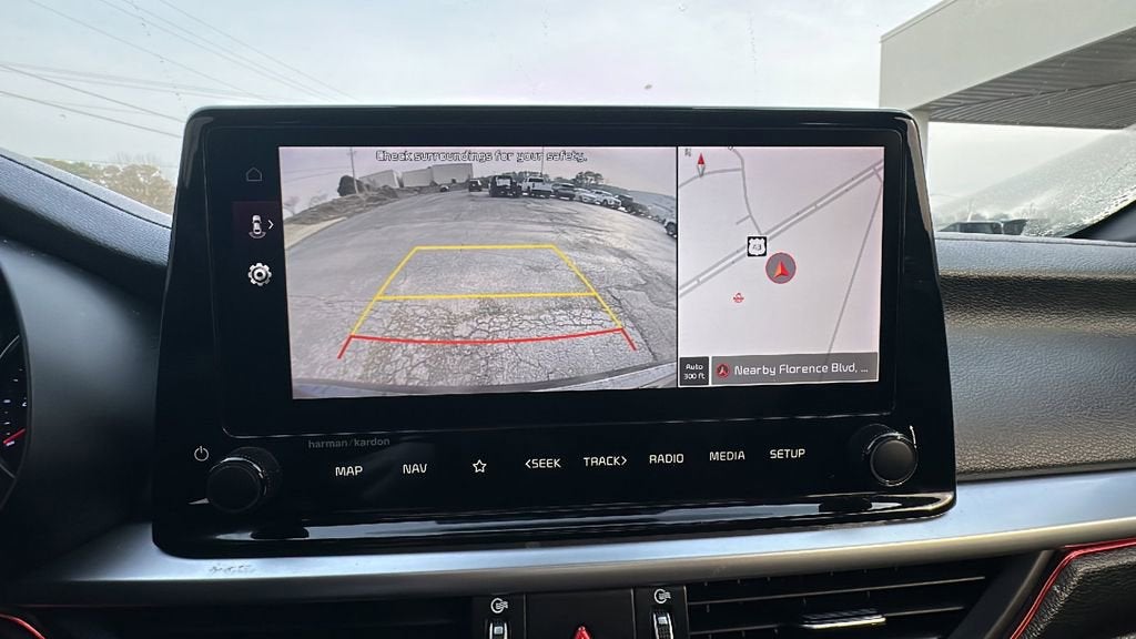 This 2024 Kia Forte is equipped with GT-Line Premium Package (harman/kardon® Premium Audio, LED Interior Lighting, Power Sunroof, and Wireless Charging), Navigation System, 4-Wheel Disc Brakes, 6 Speakers, ABS brakes, Air Conditioning, Alloy wheels, AM/FM radio: SiriusXM, Apple CarPlay & Android Auto, Auto High-beam Headlights, Automatic temperature control, Brake assist, Bumpers: body-color, Carpet Floor Mats, Cloth & SynTex Seat Trim, Delay-off headlights, Driver door bin, Driver vanity mirror, Dual front impact airbags, Dual front side impact airbags, Electronic Stability Control, Emergency communication system, Exterior Parking Camera Rear, Front anti-roll bar, Front Bucket Seats, Front Center Armrest, Front dual zone A/C, Front fog lights, Front reading lights, Front wheel independent suspension, Fully automatic headlights, Heated door mirrors, Illuminated entry, Leather Shift Knob, Leather steering wheel, Low tire pressure warning, Occupant sensing airbag, Outside temperature display, Overhead airbag, Overhead console, Panic alarm, Passenger door bin, Passenger vanity mirror, Power door mirrors, Power steering, Power windows, Radio data system, Radio: 10.25 Display Audio, Rear seat center armrest, Rear window defroster, Remote keyless entry, Security system, Speed control, Split folding rear seat, Spoiler, Sport steering wheel, Steering wheel mounted audio controls, Tachometer, Telescoping steering wheel, Tilt steering wheel, Traction control, Trip computer, Turn signal indicator mirrors, Variably intermittent wipers, and Wheels: 17 x 7.0 Alloy.