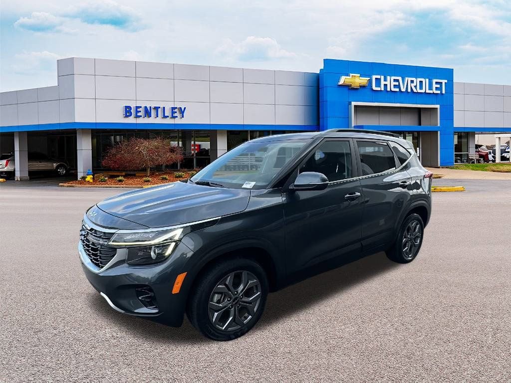 This 2024 Kia Seltos is equipped with Navy Interior Color Package, Navigation System, 4-Wheel Disc Brakes, 6 Speakers, 6.052 Axle Ratio, ABS brakes, Air Conditioning, Alloy wheels, AM/FM radio: SiriusXM, Apple CarPlay & Android Auto, Auto High-beam Headlights, Automatic temperature control, Brake assist, Bumpers: body-color, Carpet Floor Mats, Cloth & Sofino Premium Leatherette Seat Trim, Delay-off headlights, Driver door bin, Driver vanity mirror, Dual front impact airbags, Dual front side impact airbags, Electronic Stability Control, Emergency communication system: 911 Connect, Exterior Parking Camera Rear, Four wheel independent suspension, Front anti-roll bar, Front Bucket Seats, Front Center Armrest, Front fog lights, Front reading lights, Fully automatic headlights, Heated door mirrors, Heated Front Bucket Seats, Heated front seats, Illuminated entry, Leather Shift Knob, Leather steering wheel, Low tire pressure warning, Occupant sensing airbag, Outside temperature display, Overhead airbag, Overhead console, Panic alarm, Passenger door bin, Passenger vanity mirror, Power door mirrors, Power steering, Power windows, Radio: AM/FM/HD/Satellite Display System w/Navigation, Rear seat center armrest, Rear window defroster, Rear window wiper, Remote keyless entry, Security system, Speed control, Speed-sensing steering, Split folding rear seat, Spoiler, Steering wheel mounted audio controls, Tachometer, Telescoping steering wheel, Tilt steering wheel, Traction control, Trip computer, Turn signal indicator mirrors, Variably intermittent wipers, and Wheels: 17 Alloy w/Dark Gray Finish.
