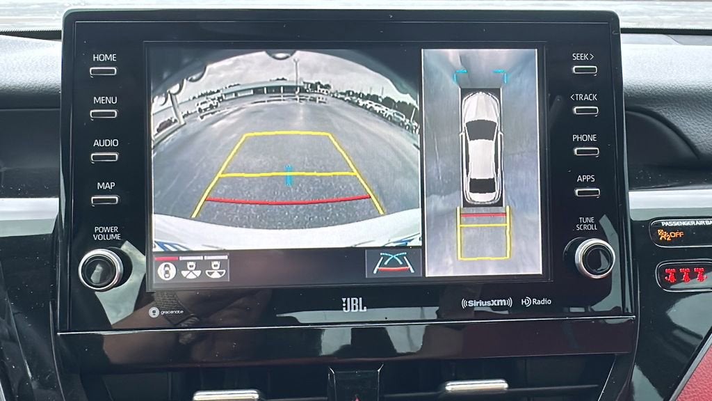 This 2024 Toyota Camry is equipped with Macadamia w/Perforated Leather Seat Trim, 4-Wheel Disc Brakes, 6 Speakers, ABS brakes, Air Conditioning, Alloy wheels, AM/FM radio: SiriusXM, Apple CarPlay/Android Auto, Auto High-beam Headlights, Automatic temperature control, Brake assist, Bumpers: body-color, Delay-off headlights, Driver door bin, Driver vanity mirror, Dual front impact airbags, Dual front side impact airbags, Electronic Stability Control, Emergency communication system: Safety Connect (1-year trial), Exterior Parking Camera Rear, Four wheel independent suspension, Front anti-roll bar, Front Bucket Seats, Front Center Armrest, Front dual zone A/C, Front reading lights, Fully automatic headlights, Heated door mirrors, Illuminated entry, Knee airbag, Leather Shift Knob, Leather steering wheel, Low tire pressure warning, Occupant sensing airbag, Outside temperature display, Overhead airbag, Overhead console, Panic alarm, Passenger door bin, Passenger vanity mirror, Power door mirrors, Power driver seat, Power steering, Power windows, Radio data system, Radio: Audio, Radio: Audio Plus w/JBL, Rear anti-roll bar, Rear reading lights, Rear seat center armrest, Rear side impact airbag, Rear window defroster, Remote keyless entry, Security system, Speed control, Speed-sensing steering, Spoiler, Sport SofTex Seat Trim w/Fabric Inserts, Steering wheel mounted audio controls, Tachometer, Telescoping steering wheel, Tilt steering wheel, Traction control, Trip computer, Turn signal indicator mirrors, Variably intermittent wipers, and Wheels: 19 x 8.5J Alloy. Recent Arrival! Odometer is 5890 miles below market average! 22/31 City/Highway MPG