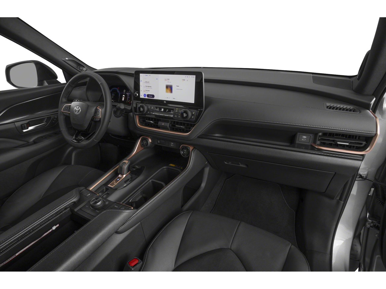 This 2024 Toyota Grand Highlander Hybrid is equipped with 2.5L 4-Cylinder, Navigation system: Drive Connect Cloud Navigation (1-year trial subscription), 11 Speakers, 20 Aluminum Alloy Wheels, 3rd row seats: split-bench, 4-Wheel Disc Brakes, ABS brakes, Air Conditioning, Alloy wheels, AM/FM radio: SiriusXM, Apple CarPlay/Android Auto, Auto High-beam Headlights, Auto-dimming Rear-View mirror, Automatic temperature control, Brake assist, Bumpers: body-color, Delay-off headlights, Driver door bin, Driver vanity mirror, Dual front impact airbags, Dual front side impact airbags, Electronic Stability Control, Emergency communication system: Safety Connect (up to 10-year trial subscription), Exterior Parking Camera Rear, Four wheel independent suspension, Front anti-roll bar, Front Bucket Seats, Front Center Armrest, Front dual zone A/C, Front fog lights, Front reading lights, Fully automatic headlights, Garage door transmitter: HomeLink, Heated & Ventilated Front Seats w/Memory, Heated door mirrors, Heated front seats, Heated rear seats, Heated steering wheel, Illuminated entry, Knee airbag, Leather Seat Trim, Leather Shift Knob, Leather steering wheel, Low tire pressure warning, Memory seat, Occupant sensing airbag, Outside temperature display, Overhead airbag, Overhead console, Panic alarm, Passenger door bin, Passenger vanity mirror, Power door mirrors, Power driver seat, Power Liftgate, Power passenger seat, Power steering, Power windows, Radio: 12.3 Toyota Audio Multimedia w/JBL Premium, Rain sensing wipers, Rear air conditioning, Rear anti-roll bar, Rear reading lights, Rear window defroster, Rear window wiper, Reclining 3rd row seat, Remote keyless entry, Security system, Speed control, Speed-sensing steering, Split folding rear seat, Spoiler, Steering wheel mounted audio controls, TBD Axle Ratio, Telescoping steering wheel, Tilt steering wheel, Traction control, Trip computer, Turn signal indicator mirrors, Variably intermittent wipers, and Ventilated front seats.