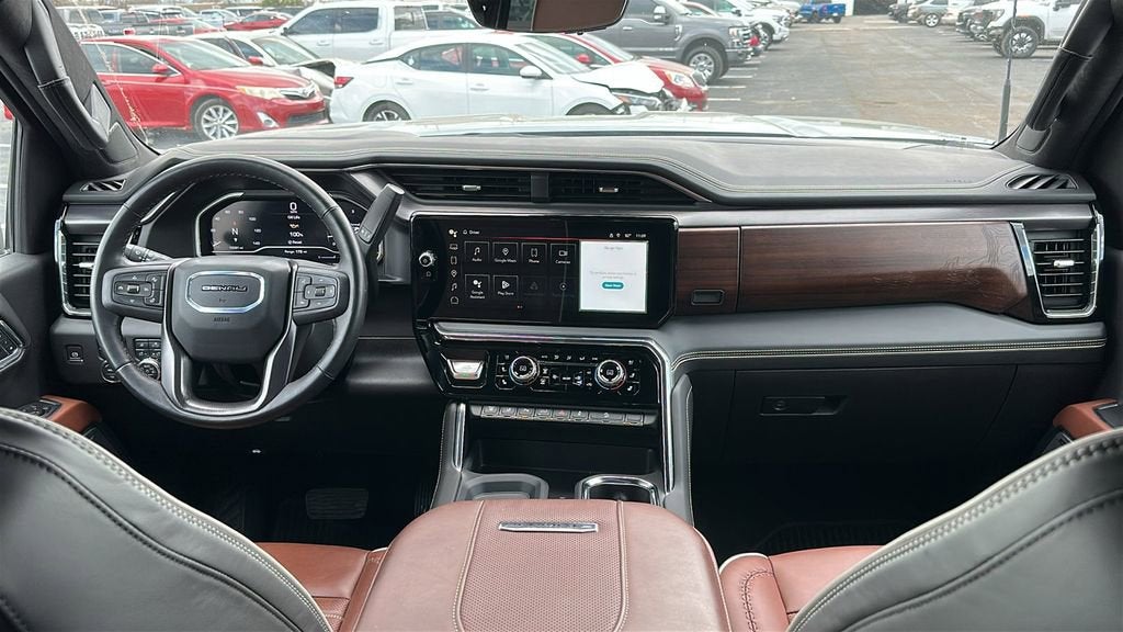 This 2025 GMC Sierra 2500HD is equipped with Gooseneck/5th Wheel Prep Package, Hitch Package (LPO), Preferred Equipment Group 5SB (120-Volt Bed Mounted Power Outlet, 120-Volt Instrument Panel Power Outlet, 2 Charge-Only Rear USB Ports, 2 Charge/Data USB Ports Inside Center Console, 2 USB Ports, 2-Speed Active Transfer Case, Bed View Camera w/2 Trailer Camera Provisions, Bose Premium Series 12-Speaker System, Deep-Tinted Glass, Electric Rear-Window Defogger, Floor-Mounted Center Console, Front Rain-Sensing Wipers, HD Surround Vision, Heated 2nd Row Outboard Seats, Heated Driver & Front Outboard Passenger Seats, Keyless Open & Start, LED Cargo Area Lighting, LED Smoked Amber Roof Marker Lamps, Manual Tilt-Wheel/Telescoping Steering Column, OnStar Services Capable, Power Front Passenger Windows w/Express Up/Down, Power Sliding Rear Window w/Defogger, Power Sunroof, Push Button Start, Rear Cross Traffic Alert, Rear Wheelhouse Liners, Remote Vehicle Starter System, Safety Alert Seat, Signature Denali Ultimate Grille in Vadar Chrome, SiriusXM w/360L Trial Subscription, Spray-On Pickup Bedliner w/GMC Logo, Steering Wheel Audio Controls, Trailer Cam Provisions & Trailer Viewing Software, Trailer Side Blind Zone Alert, Trailer Tire Pressure Monitor Sensors, Ultrasonic Front & Rear Park Assist, Unauthorized Entry Theft-Deterrent System, Universal Home Remote, Ventilated Driver & Front Passenger Seats, Wireless Charging, and Wireless Phone Projection), Technology Package (Inside Rearview Auto-Dimming Rear Camera Mirror and Multicolor 15 Diagonal Head-Up Display), X31 Off-Road Package (Hill Descent Control), 10-Speed Automatic, 4WD, Alpine Umber Leather, 12 Speakers, 16-Way Power Driver Seat Adjuster w/Lumbar, 16-Way Power Passenger Seat Adjuster w/Lumbar, 220-Amp Alternator, 3.42 Axle Ratio, 4-Wheel Disc Brakes, ABS brakes, Air Conditioning, Alloy wheels, AM/FM radio: SiriusXM with 360L, Apple CarPlay/Android Auto, Auto High-beam Headlights, Auto-dimming door mirrors, Auto-dimming Rear-View mirror, Automatic Emergency Braking, Automatic temperature control, Block heater, Brake assist, Buckle to Drive, Bumpers: body-color, Compass, Delay-off headlights, Driver door bin, Driver Memory, Driver vanity mirror, Dual front impact airbags, Dual front side impact airbags, Dual Heavy-Duty 70 Amp Battery, Electronic Stability Control, Emergency communication system: OnStar, Following Distance Indicator, Forward Collision Alert, Front anti-roll bar, Front Bucket Seats, Front Center Armrest, Front dual zone A/C, Front fog lights, Front Pedestrian Braking, Front reading lights, Front wheel independent suspension, Full Grain Leather Seat Trim, Fully automatic headlights, Garage door transmitter, Genuine wood dashboard insert, Genuine wood door panel insert, Heads-Up Display, Heated door mirrors, Heated front seats, Heated rear seats, Heated steering wheel, Hitch Guidance w/Hitch View, Illuminated entry, In-Vehicle Trailering System App, IntelliBeam Automatic High Beam On/Off, Lane Departure Warning System, Leather steering wheel, Low tire pressure warning, Memory seat, Occupant sensing airbag, Off-Road Suspension, Outside temperature display, Overhead airbag, Overhead console, Panic alarm, Passenger door bin, Passenger vanity mirror, Pickup Box, Power door mirrors, Power driver seat, Power moonroof, Power passenger seat, Power steering, Power windows, Radio: AM/FM w/Premium GMC Infotainment System, Rain sensing wipers, Rear reading lights, Rear seat center armrest, Rear step bumper, Rear window defroster, Remote keyless entry, Security system, Speed control, Speed-sensing steering, Split folding rear seat, Steering wheel mounted audio controls, Tachometer, Telescoping steering wheel, Tilt steering wheel, Traction