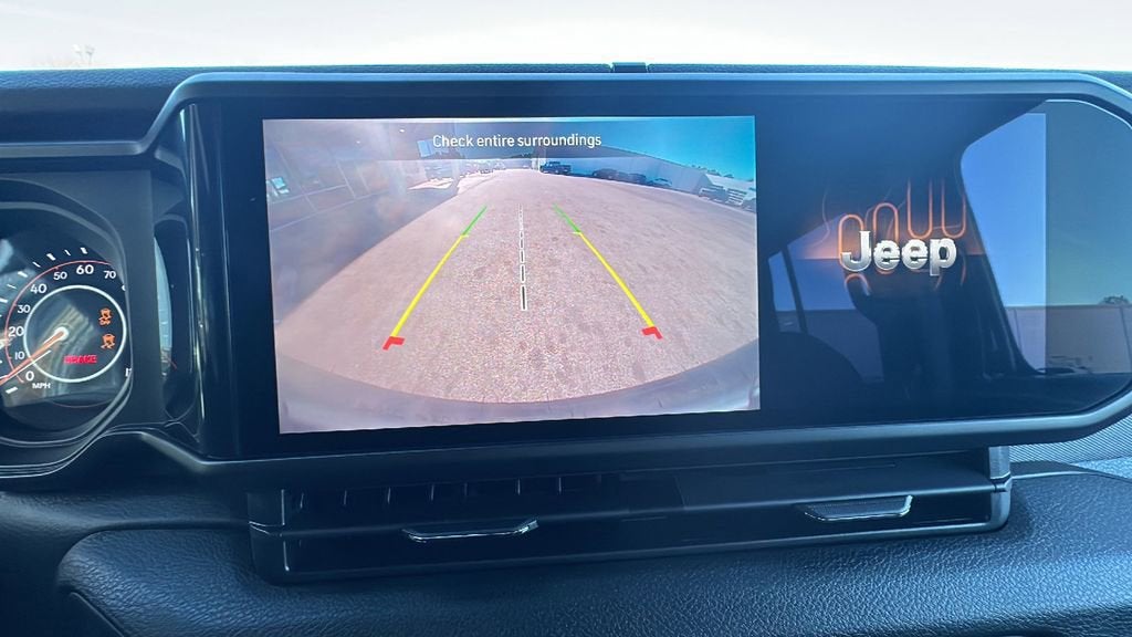 This 2025 Jeep Wrangler is equipped with Convenience Group (2-Door Passive Entry, Front Door Locks, Air Conditioning w/Auto Temperature Control, Air Filtering, Cluster 7.0 TFT Color Display, Emergency/Assistance Call, Heated Front Seats, Heated Steering Wheel, Remote Start System, and Universal Garage Door Opener), LED Headlamp & Fog Lamp Group (Front LED Fog Lamps and LED Premium Reflector Headlamps), Quick Order Package 22S Sport S (Advanced Brake Assist, Automatic Headlamps, Corning Gorilla Glass, Deep Tint Sunscreen Windows, Enhanced Adaptive Cruise Control, Full Speed Forward Collision Warning Plus, Power Heated Mirrors, Premium Wrapped Steering Wheel, Security Alarm, Sun Visors w/Illuminated Vanity Mirrors, and Wheels: 17 x 7.5 Gray), Safety Group (Auto High Beam Headlamp Control, Blind Spot & Cross Path Detection, Injection Molded Black Rear Bumper, LED Taillamps, and ParkSense Rear Park Assist System), Trailer Tow & Aux Switch Group (7 & 4 Pin Wiring Harness, Auxiliary Switches, and Class II Receiver Hitch), 110 MPH Vehicle Max Speed Calibration, 3.45 Overall Top Gear Ratio, 4-Wheel Disc Brakes, 8 Speakers, ABS brakes, Air Conditioning, AM/FM radio: SiriusXM, Apple CarPlay/Android Auto, Aux Battery, Brake assist, Cloth Low-Back Bucket Seats, Compass, Delay-off headlights, Driver door bin, Driver vanity mirror, Dual front impact airbags, Dual front side impact airbags, Electronic Stability Control, Front anti-roll bar, Front Bucket Seats, Front Center Armrest w/Storage, Front fog lights, Front reading lights, Illuminated entry, Integrated roll-over protection, Low tire pressure warning, MOPAR All-Weather Floor Mats, Non-Lock Fuel Cap w/o Discriminator, Normal Duty Suspension, Occupant sensing airbag, Outside temperature display, Overhead airbag, Panic alarm, ParkView Rear Back-Up Camera, Passenger door bin, Passenger vanity mirror, Power steering, Power Top Quarter Window Storage Bag, Power windows, Radio data system, Radio: Uconnect 5 w/12.3 Display, Rear anti-roll bar, Rear reading lights, Rear Window Defroster, Rear Window Wiper/Washer, Remote keyless entry, Removable Rear Quarter Windows, Sky 1-Touch Power Top, Speed control, Split folding rear seat, Steering wheel mounted audio controls, Stop-Start Dual Battery System, Tachometer, Telescoping steering wheel, Tilt steering wheel, Traction control, Trip computer, Variably intermittent wipers, and Wheels: 17 x 7.5 Black Steel Styled.