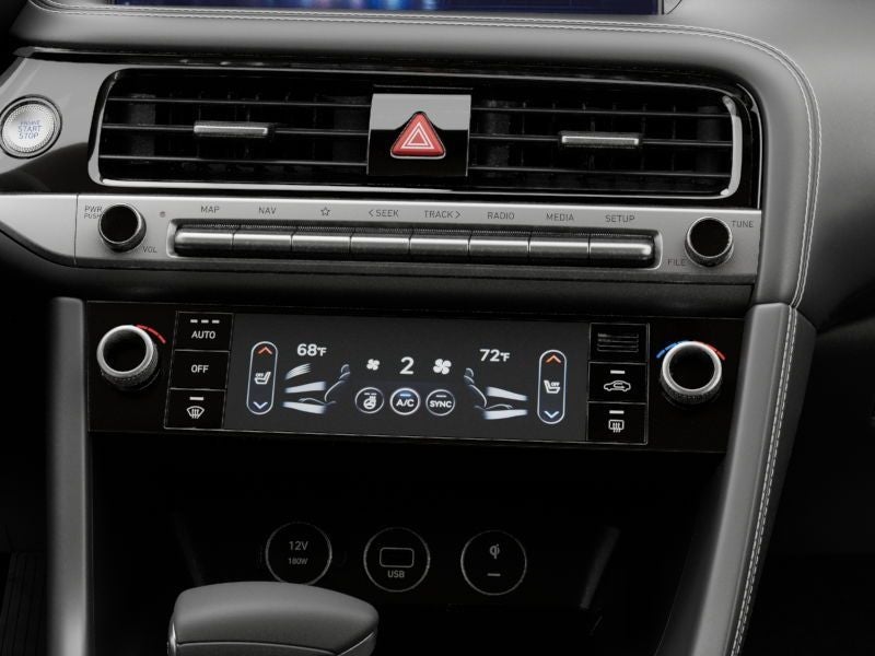 This 2026 Genesis G70 is equipped with Option Group 01, 15 Speakers, 4-Wheel Disc Brakes, ABS brakes, Air Conditioning, All Season Fitted Liners, Alloy wheels, AM/FM radio: SiriusXM, Android Auto & Apple CarPlay, Anti-whiplash front head restraints, Auto High-beam Headlights, Auto-dimming door mirrors, Auto-dimming Rear-View mirror, Automatic temperature control, Brake assist, Bumpers: body-color, Delay-off headlights, Driver door bin, Driver vanity mirror, Dual front impact airbags, Dual front side impact airbags, Electronic Stability Control, Emergency communication system: Genesis Connected Services, Exterior Parking Camera Rear, First Aid Kit, Four wheel independent suspension, Front anti-roll bar, Front Bucket Seats, Front Center Armrest, Front dual zone A/C, Front reading lights, Fully automatic headlights, Garage door transmitter: HomeLink, Heated door mirrors, Heated front seats, Heated steering wheel, Illuminated entry, Knee airbag, Leather Seating Surfaces, Low tire pressure warning, Memory seat, Navigation System, Occupant sensing airbag, Outside temperature display, Overhead airbag, Overhead console, Panic alarm, Passenger door bin, Passenger vanity mirror, Power door mirrors, Power driver seat, Power moonroof, Power passenger seat, Power steering, Power windows, Rain sensing wipers, Rear anti-roll bar, Rear reading lights, Rear seat center armrest, Rear side impact airbag, Rear window defroster, Remote keyless entry, Reversible Cargo Tray, Security system, Speed control, Speed-Sensitive Wipers, Split folding rear seat, Steering wheel memory, Steering wheel mounted audio controls, Tachometer, Telescoping steering wheel, Traction control, Trip computer, Turn signal indicator mirrors, Variably intermittent wipers, and Ventilated front seats.